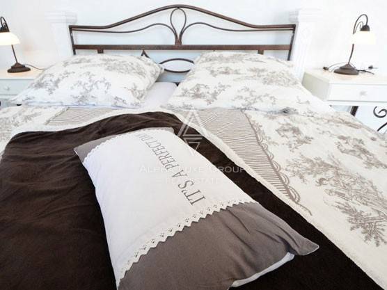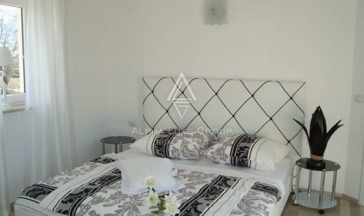 Unutarnji prostor uključuje: prostrani ulazni hodnik, gostinjski toalet, spremište, kotlovnicu, veliki dnevni boravak s izlazom na terasu, moderno opremljenu kuhinju i blagovaonicu, četiri udobne spavaće sobe, svaka sa svojom privatnom kupaonicom.