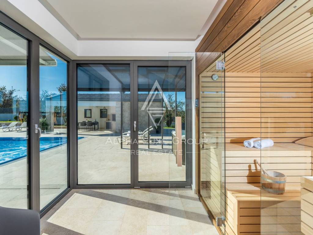 Vila je opremljena električnim tendama sa senzorima za oluju, kompletnim alarmnim i videonadzornim sustavom te wellness zonom sa saunom, tuš-kabinom i multifunkcionalnim prostorom za fitness ili druženja. Sustavi grijanja, hlađenja i pripreme tople vode osiguravaju cjelogodišnji komfor, zbog čega je vila idealna i kao privatni dom i kao luksuzna turistička investicija.