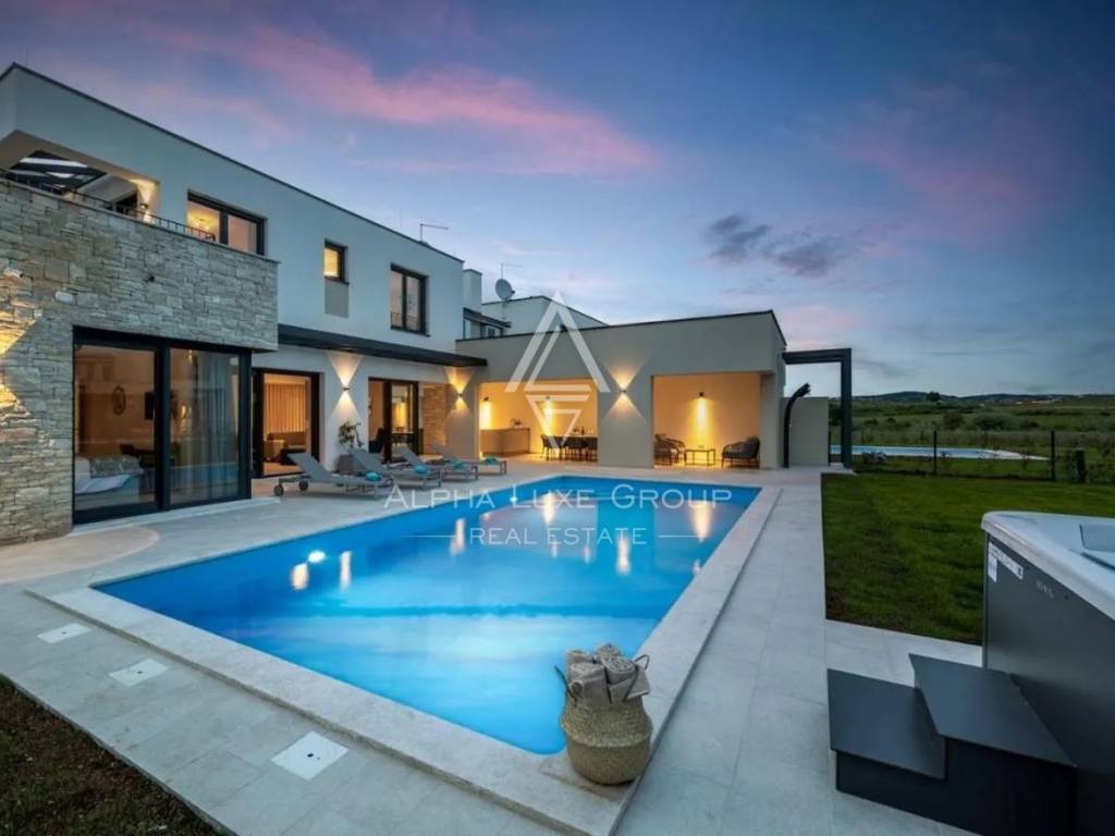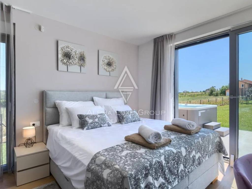 Vila je opremljena sustavom grijanja i hlađenja putem dizalice topline, uz dodatne klima uređaje u svakoj prostoriji. Visokokvalitetna aluminijska stolarija poboljšava izolaciju, dok solarni paneli od 10 kW značajno pridonose energetskoj učinkovitosti i smanjenju troškova.