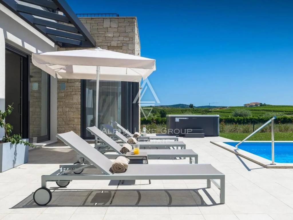 Brtonigla je jedno od najšarmantnijih područja Istre, poznata po vinskim cestama, maslinicima i mirnom mediteranskom ugođaju. Lokacija nudi brzi pristup plažama, biciklističkim rutama, vrhunskim restoranima te gradovima Umag i Novigrad, što je čini izuzetno atraktivnom za kupce luksuznih nekretnina.