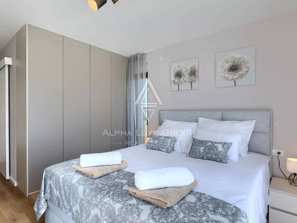 Na katu se nalaze tri elegantno uređene spavaće sobe, svaka s vlastitom kupaonicom i izlazom na terasu s lijepim pogledom na more. Svaka prostorija oblikovana je kako bi pružila udobnost, privatnost i ugodnu atmosferu.