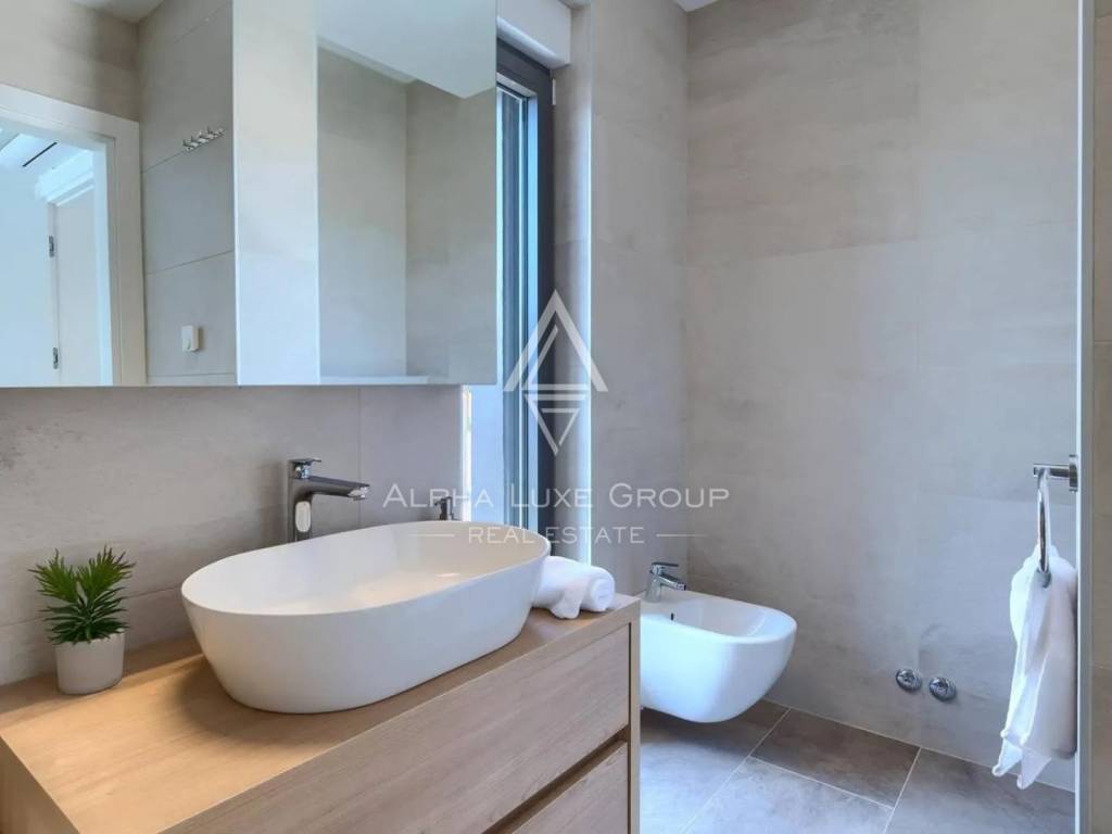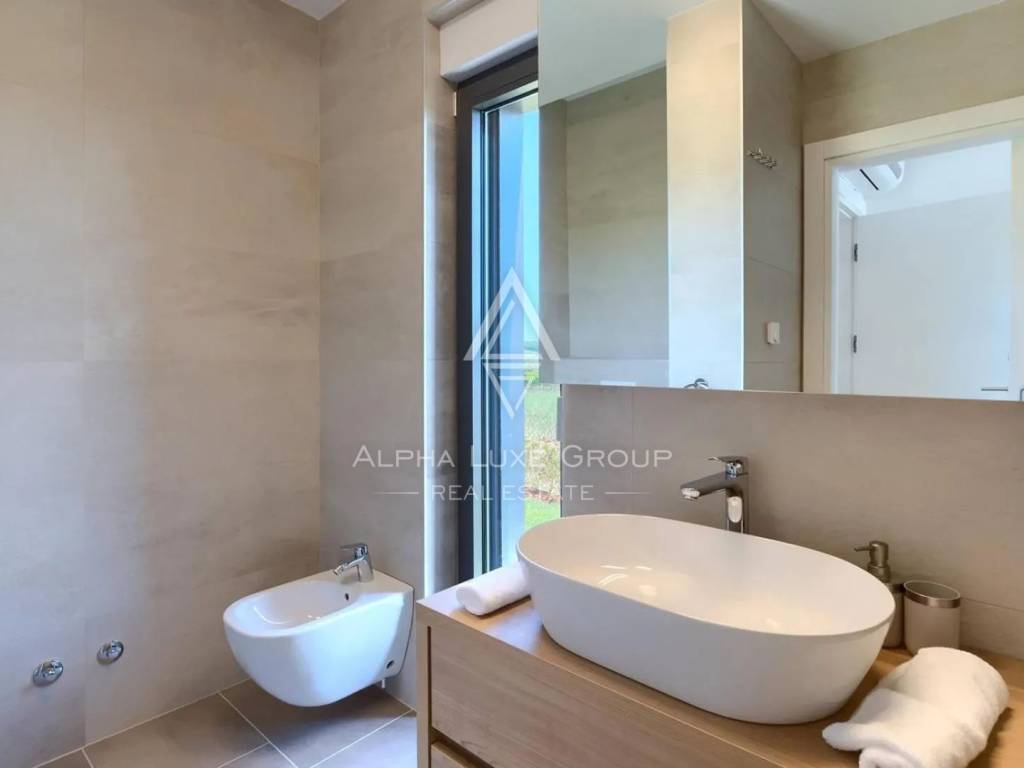 Nekretnina uključuje grijani bazen, jacuzzi i saunu, stvarajući idealno okruženje za opuštanje tijekom cijele godine. Vrt je održavan putem automatskog sustava navodnjavanja s privatnim bunarom, što osigurava uvijek uredan i njegovan eksterijer.
