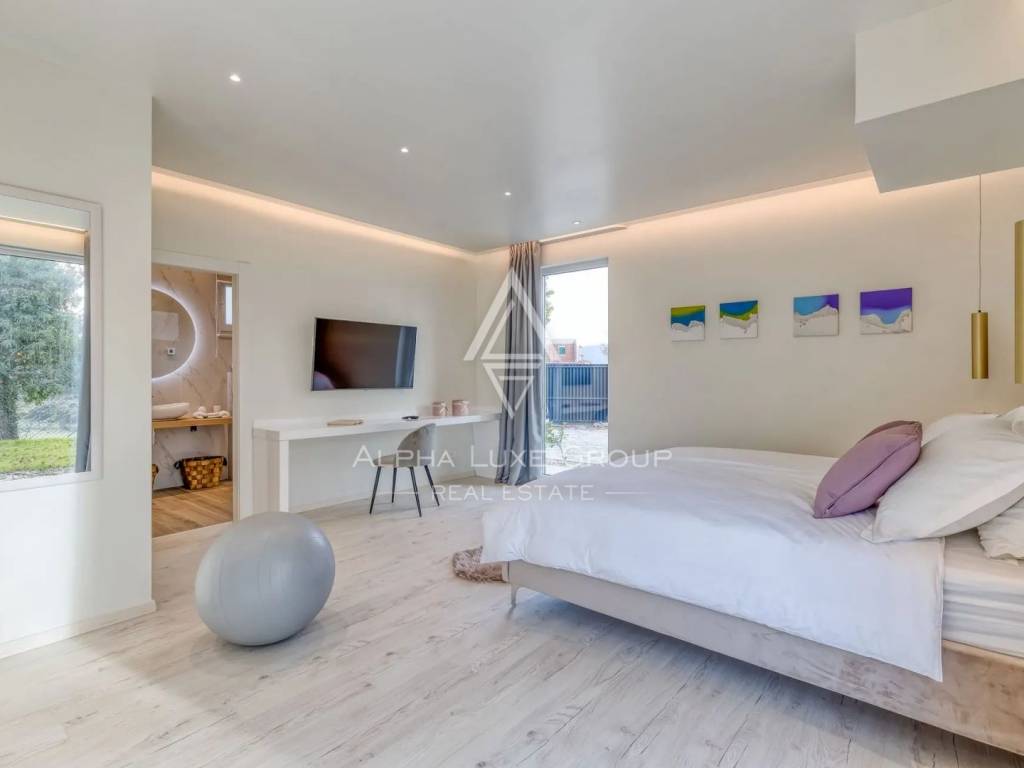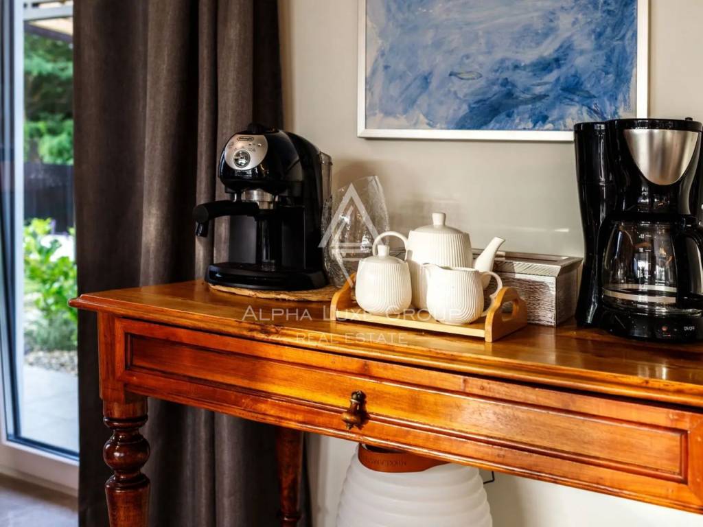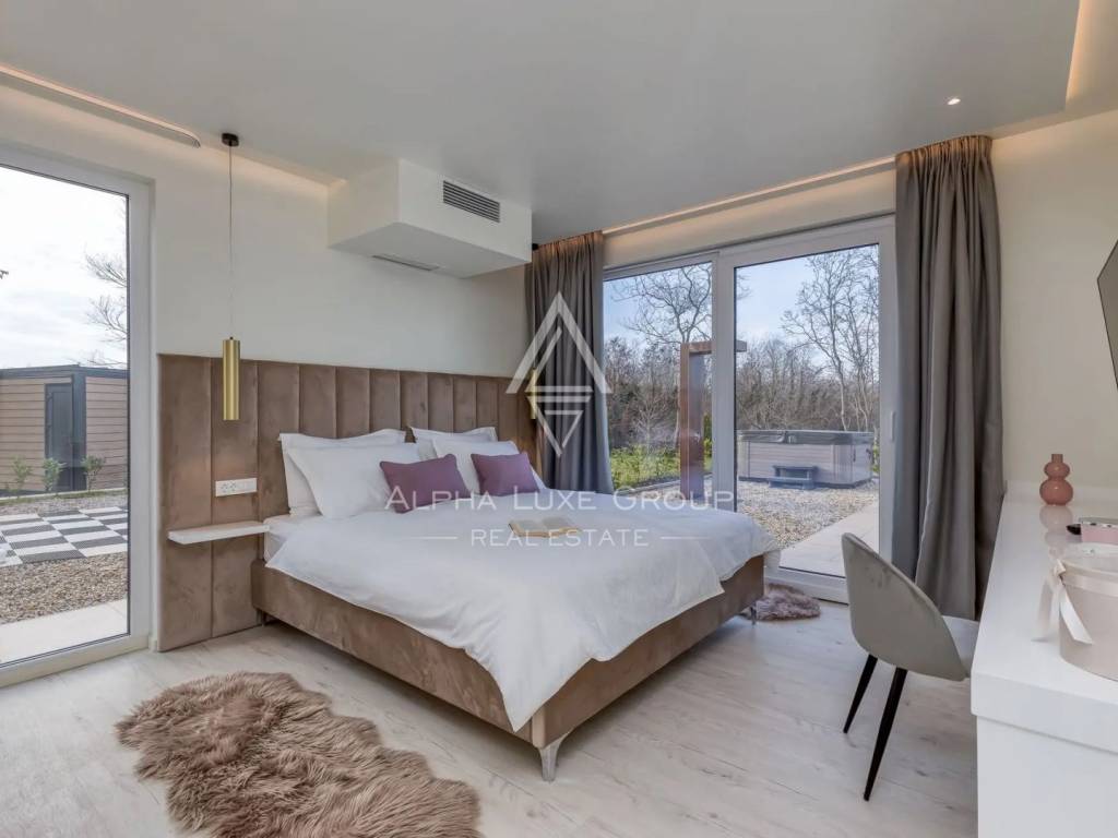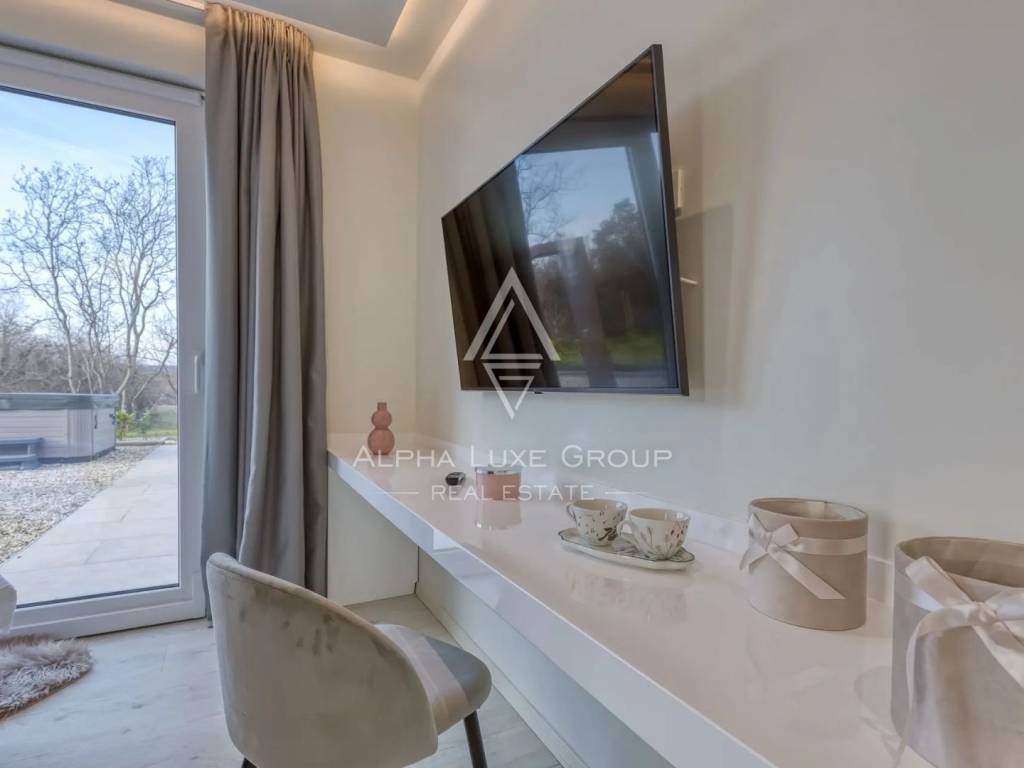 Impresivna vila nalazi se na velikoj parceli od 1.572 m² i obuhvaća 290 m² elegantnog unutarnjeg prostora raspoređenog na dvije etaže. U prizemlju se nalazi svijetao open-space dnevni boravak s velikim smart TV-om, PlayStation konzolom i udobnim lounge dijelom, povezan s blagovaonicom za osam osoba i potpuno opremljenom suvremenom kuhinjom. Odvojeni ured pruža mir i privatnost čak i tijekom odmora.