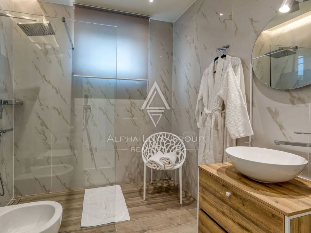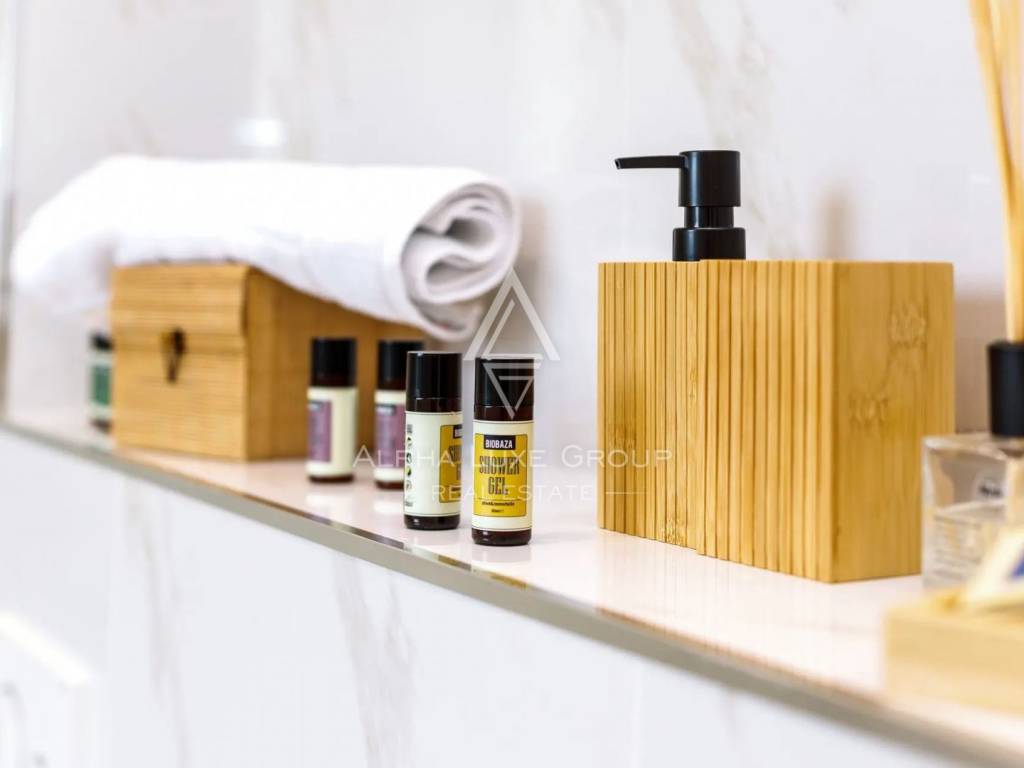 Dva stilizirana prizemna „en suite” apartmana, od kojih je jedan prilagođen osobama smanjene pokretljivosti, imaju vlastite kupaonice i izlaz na terasu. Na katu se nalaze još dvije spavaće sobe s privatnim kupaonicama, walk-in garderoba te prostrana terasa s panoramskim pogledom na maslinike, vinograde i polja lavande. Sve kupaonice opremljene su modernom sanitarijom i elegantnim dizajnerskim detaljima.