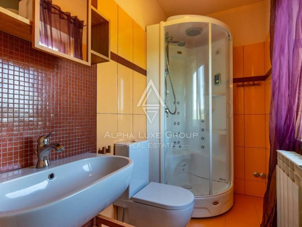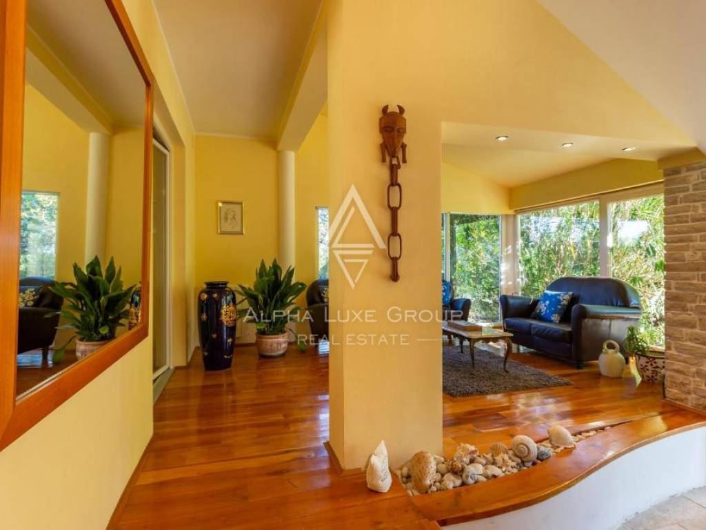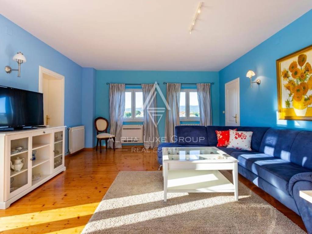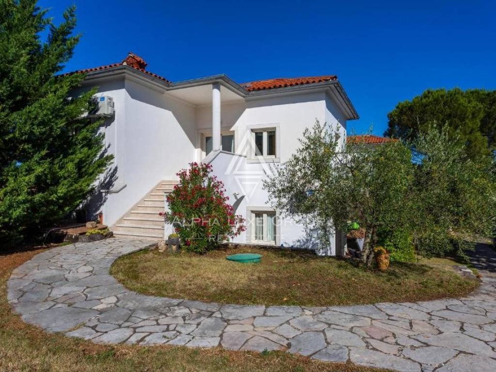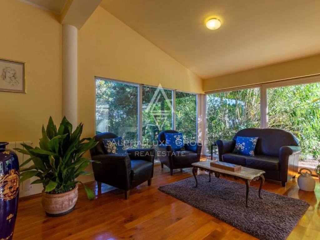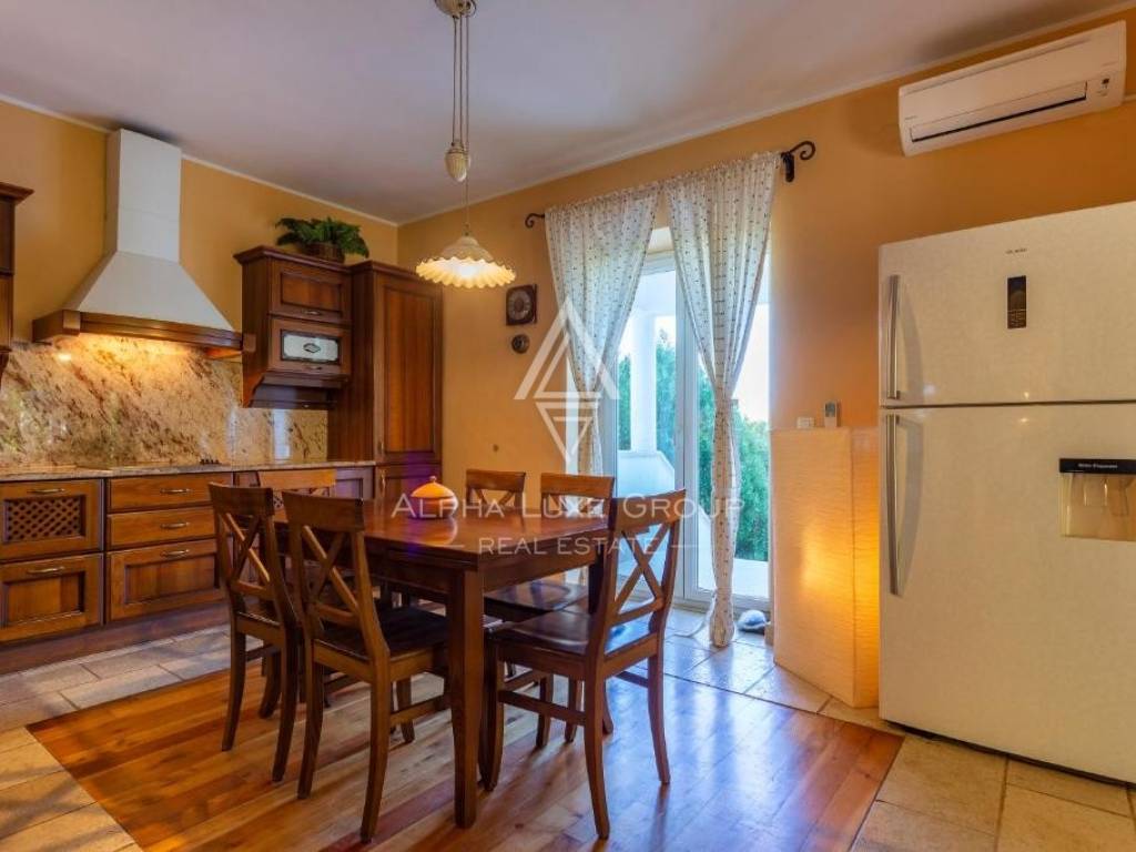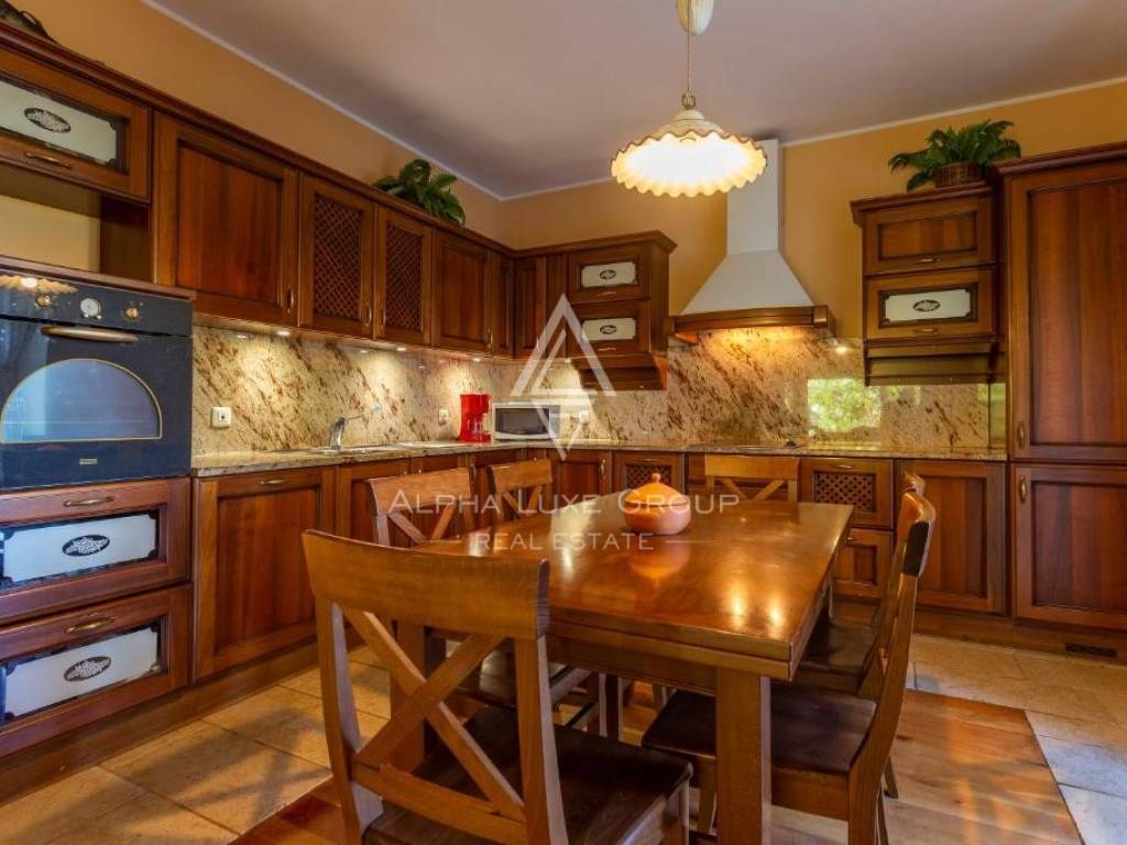 Vila se proteže na dvije dobro osmišljene etaže s ukupno sedam spavaćih soba, pet potpuno opremljenih kupaonica i dodatnim toaletom za goste. U prizemlju se nalazi potpuno opremljena kuhinja s blagovaonicom, svijetli dnevni boravak s kaminom i dodatni prostor za blagovanje s izravnim izlazom na terasu uz bazen. Na ovoj etaži smještena je i vinska soba, praonica rublja te šarmantna zatvorena lođa od stakla, zamišljena kao tihi zeleni kutak idealan za jutarnju kavu ili poslijepodnevni odmor.