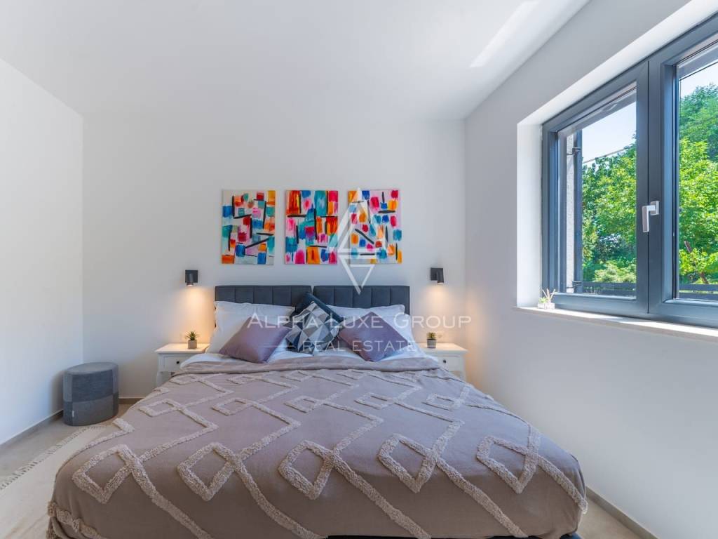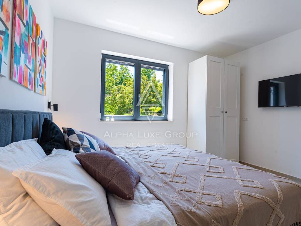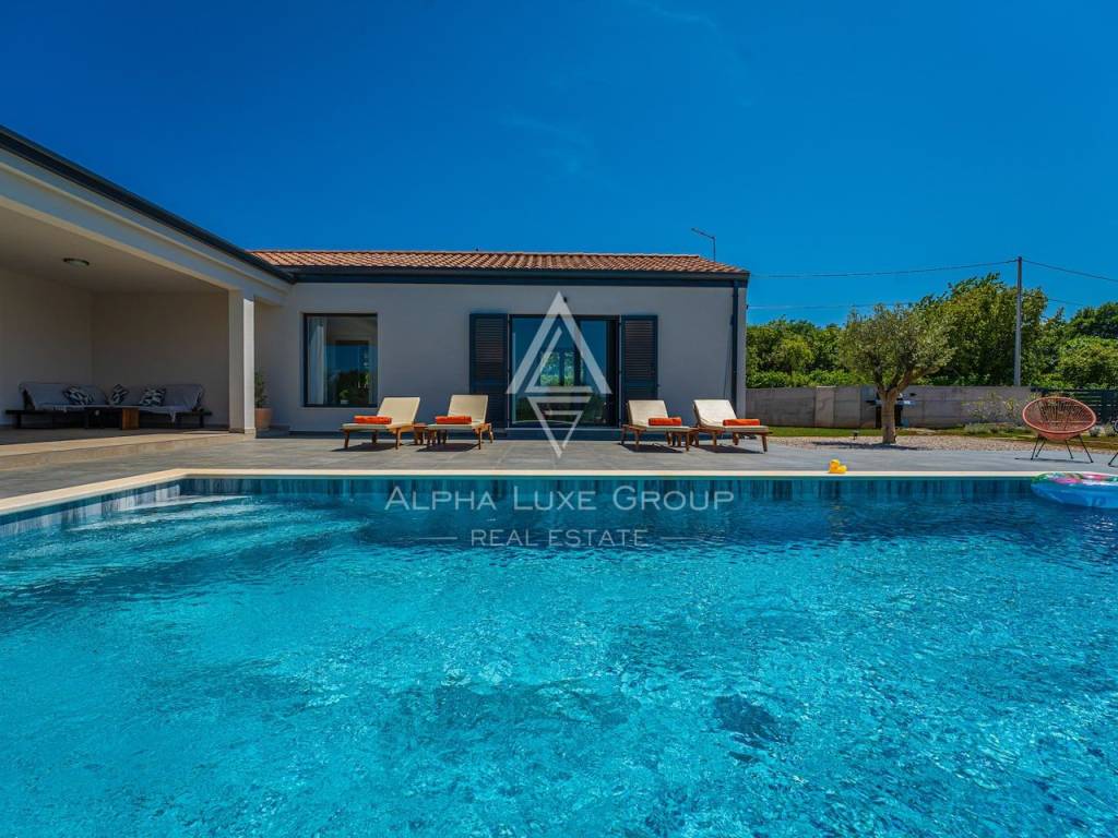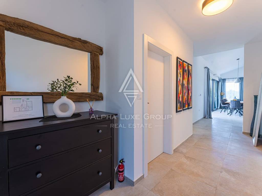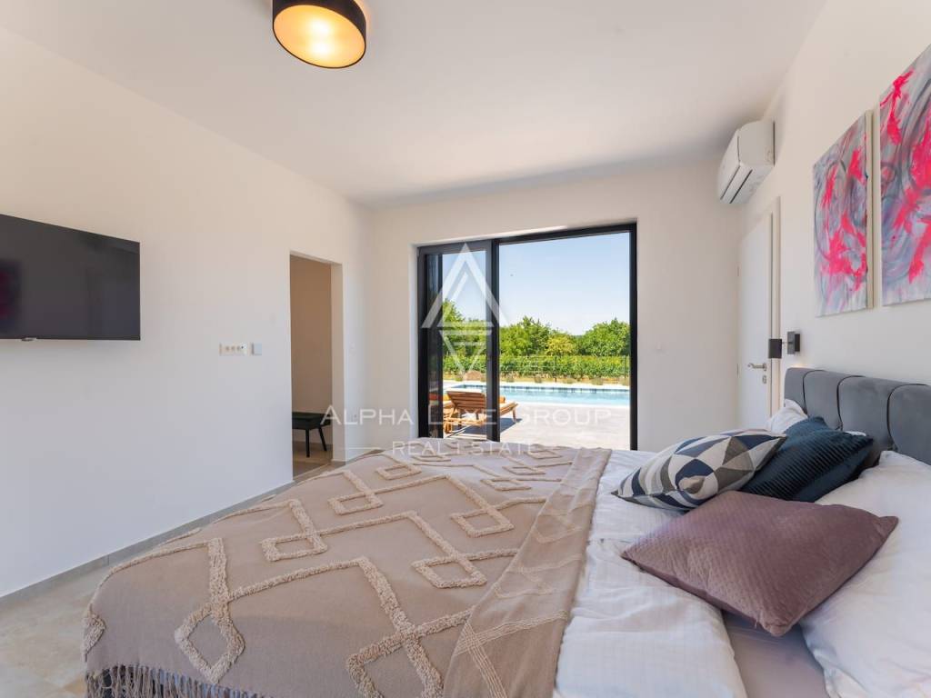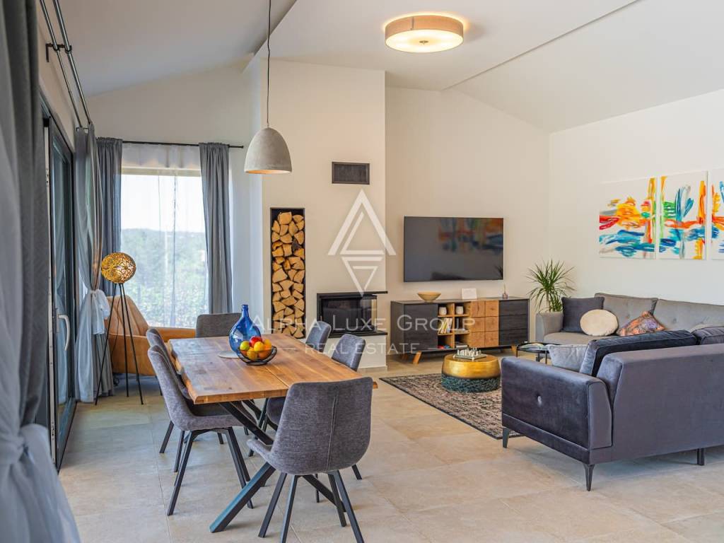 Smještena u mirnom naselju u blizini Labina, ova prekrasno dizajnirana kuća nudi profinjenu udobnost okruženu prirodnim krajolikom i tradicionalnim istarskim šarmom. Nekretnina predstavlja skladan spoj kvalitetne gradnje, ukusno uređenog interijera i rasporeda stvorenog za opuštanje i suvremeni stil života. Svijetli otvoreni dnevni prostor povezuje kuhinju, blagovaonicu i dnevni boravak te vodi na natkrivenu terasu s pogledom na vrt i bazen. Tri pažljivo uređene spavaće sobe svaka imaju vlastitu kupaonicu, dok gostinjski toalet i tehničke prostorije dodatno olakšavaju svakodnevni boravak.
