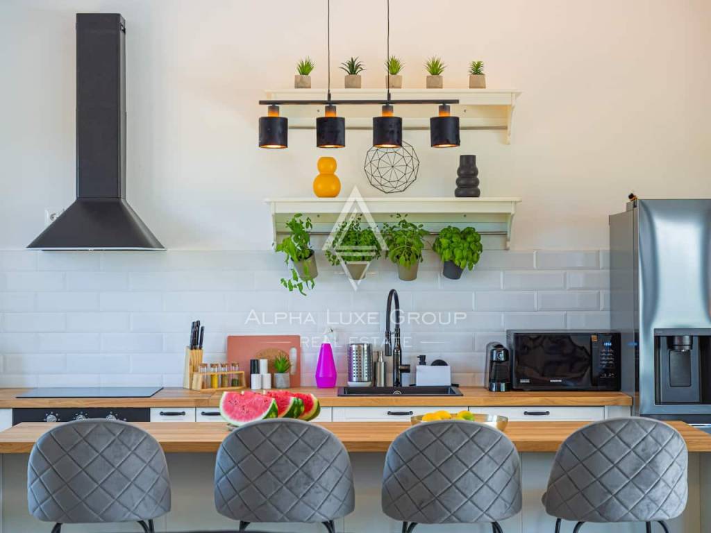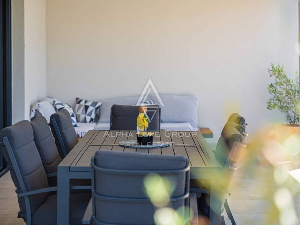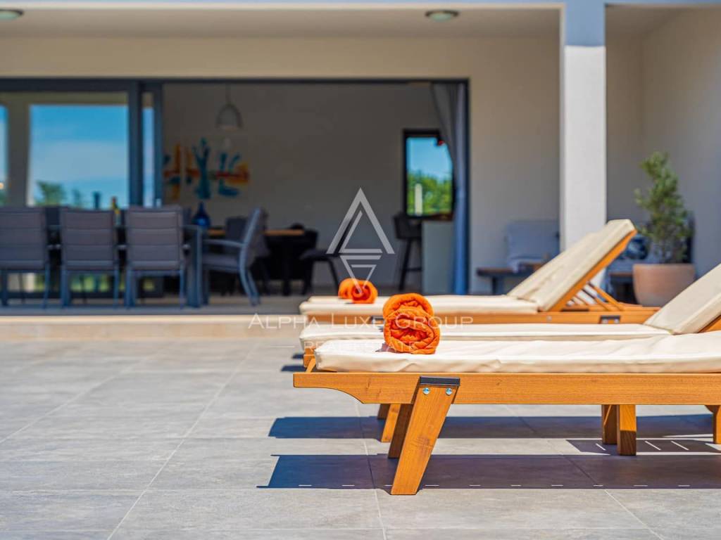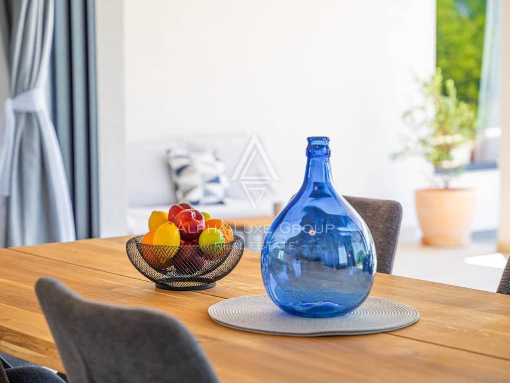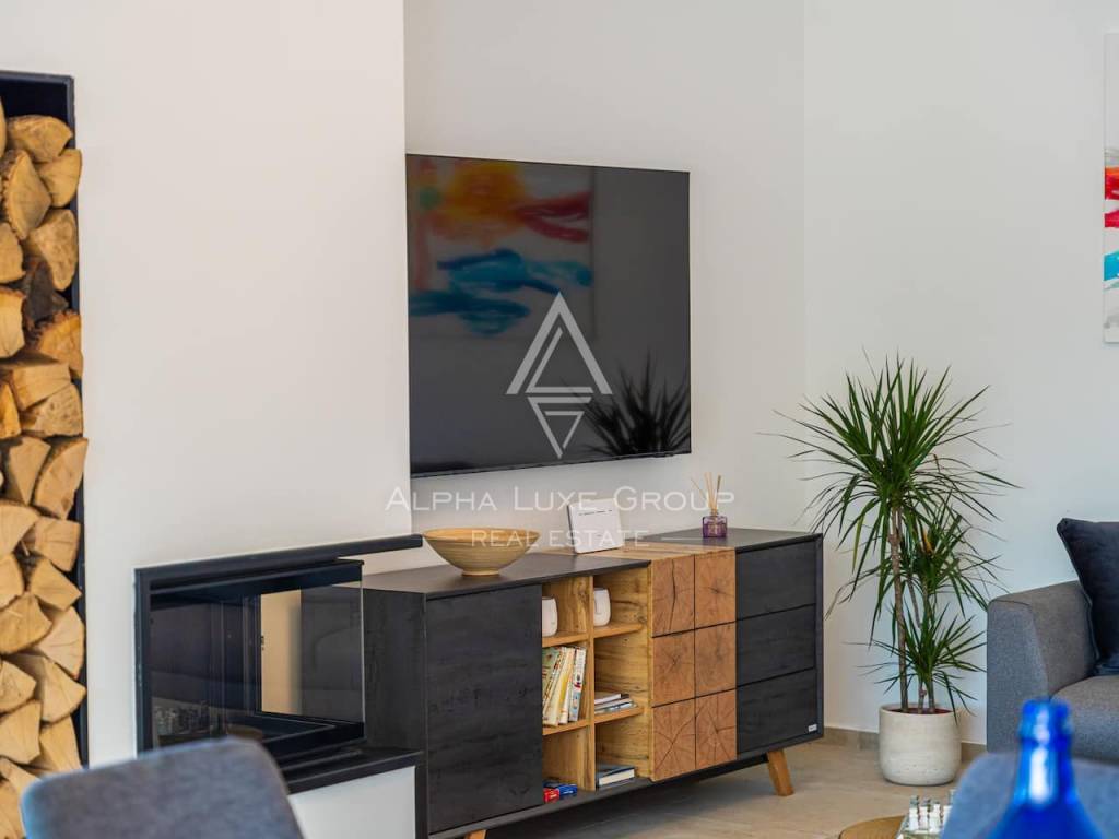 Vanjski prostor pomno je uređen i u potpunosti ograđen, stvarajući privatno okruženje naglašeno mediteranskim krajobrazom. Bazen s prostorom za sunčanje pruža savršeno mjesto za opuštanje, čineći ovu nekretninu izvrsnim izborom za trajni dom ili pametnu investiciju s izvrsnim potencijalom za turistički najam. Bezvremenska arhitektura prirodno se uklapa u okolinu i jamči dugoročnu vrijednost i estetsku privlačnost.