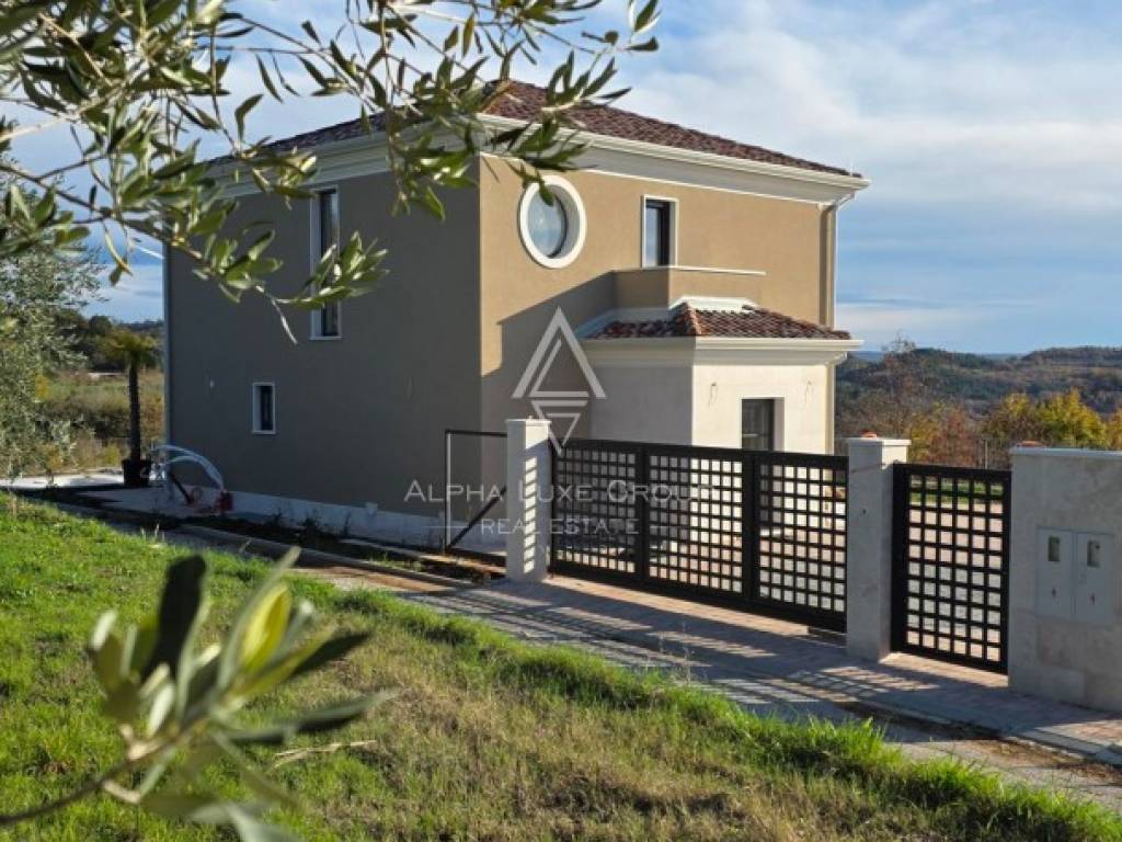 Smještena u jednoj od najtraženijih zona Buja, ova arhitektonski posebna luksuzna rezidencija nudi izniman spoj suvremenog dizajna, napredne tehnologije i očaravajućih otvorenih pogleda na more, maslinike i istarski krajolik. Ukupna površina od 384 m² obuhvaća 280 m² profinjenog unutarnjeg prostora i 104 m² terasa, pažljivo raspoređenih kroz podrum, prizemlje i kat. Svaka etaža osmišljena je kako bi maksimalno iskoristila prirodno svjetlo i neometane poglede, stvarajući atmosferu elegancije, privatnosti i skladne povezanosti s okruženjem.