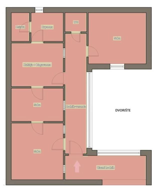 Stan je površine 88,5 m2 i sastoji se od 3 sobe, kuhinje s blagovaonicom, kupaonice, zasebnog WC-a, ostave i hodnika.