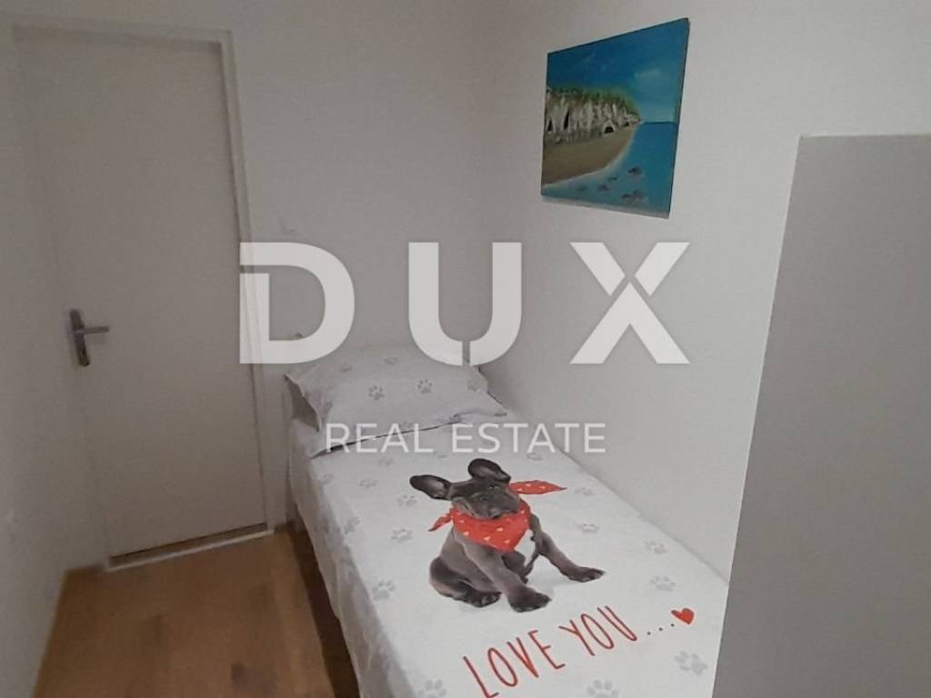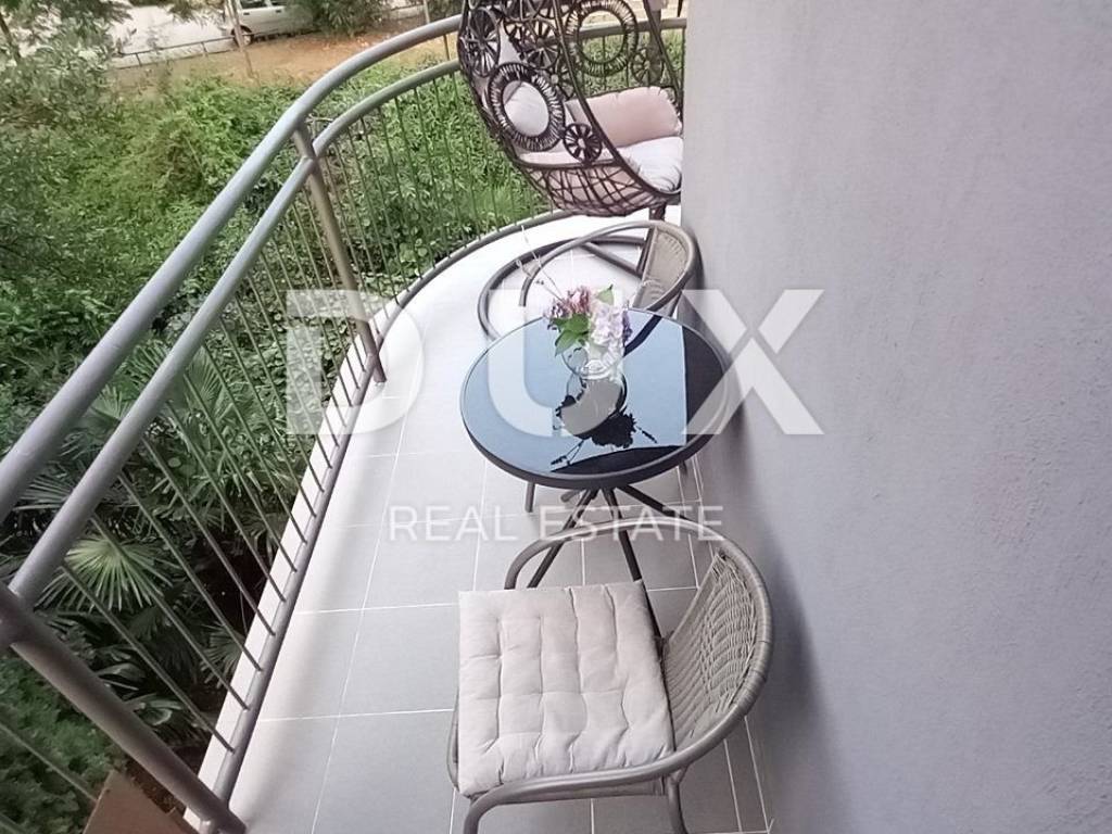 Iznajmljuje se potpuno uređen i namješten stan od 60m, smješten na 2. katu zgrade, u mirnoj ulici okruženoj zelenilom. Stan se sastoji od dvije spavaće sobe, prostranog dnevnog boravka s balkonom (koji može poslužiti kao dodatni prostor za spavanje treće osobe), kuhinje s blagovaonicom i kuhinjskim balkonom, te odvojene kupaonice i WC-a. Posebna prednost ovog stana su dva balkona, koje pružaju dodatni prostor za opuštanje i uživanje u okolišu.