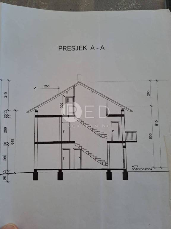 Potkrovlje je u rohbau i ima dovoljnu visinu i prozračnost za uređenje dodatnog ugodnog životnog prostora.