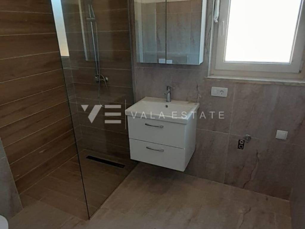 Nekretnine otok Krk, Njivice - na prodaju je manji apartman u prizemlju novogradnje smještene na odličnoj lokaciji u blizini mora i lijepih plaža. Apartman ukupne stambene površine 33 m2 sastoji se od ulaznog dijela, kupaone, spavaće sobe i otvorenog prostora koji objedinjuje kuhinju i blagovaonom sa dnevnim boravkom iz kojeg se izlazi na terasu i okućnicu s djelomičnim pogledom na more. Kvalitetna gradnja i oprema, klimatizacija prostorija, podno grijanje i protuprovalna vrata karakteristike su ove novogradnje. Pripada mu jedno parkirno mjesto na zajedničkom dvorištu zgrade. Nalazi se na odličnoj lokaciji udaljenoj svega 500 m od mora te nedaleko od centra Njivica. Nekretnina je trenutno u visokoj roh bau fazi izgradnje, a planirani dovršetak za useljenje je do ljeta 2025. godine. Agencija Vala Estate Malinska će Vam omogućiti siguran i transparentan prijenos vlasništva sve potrebne dokumentacije.