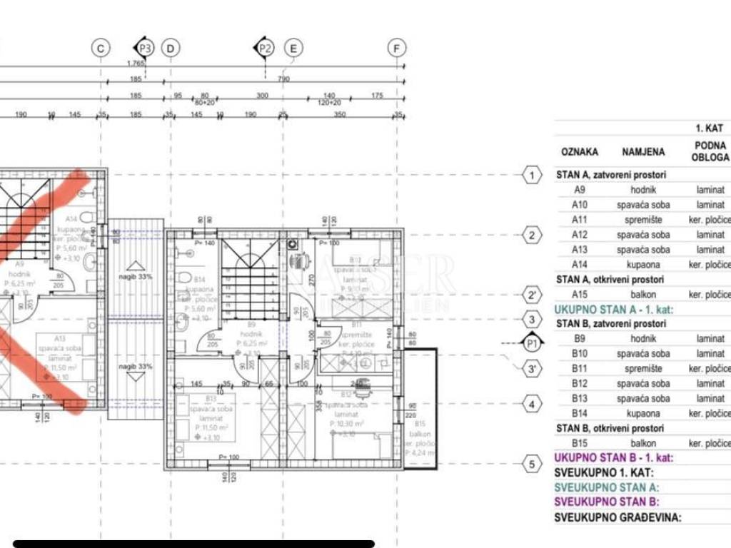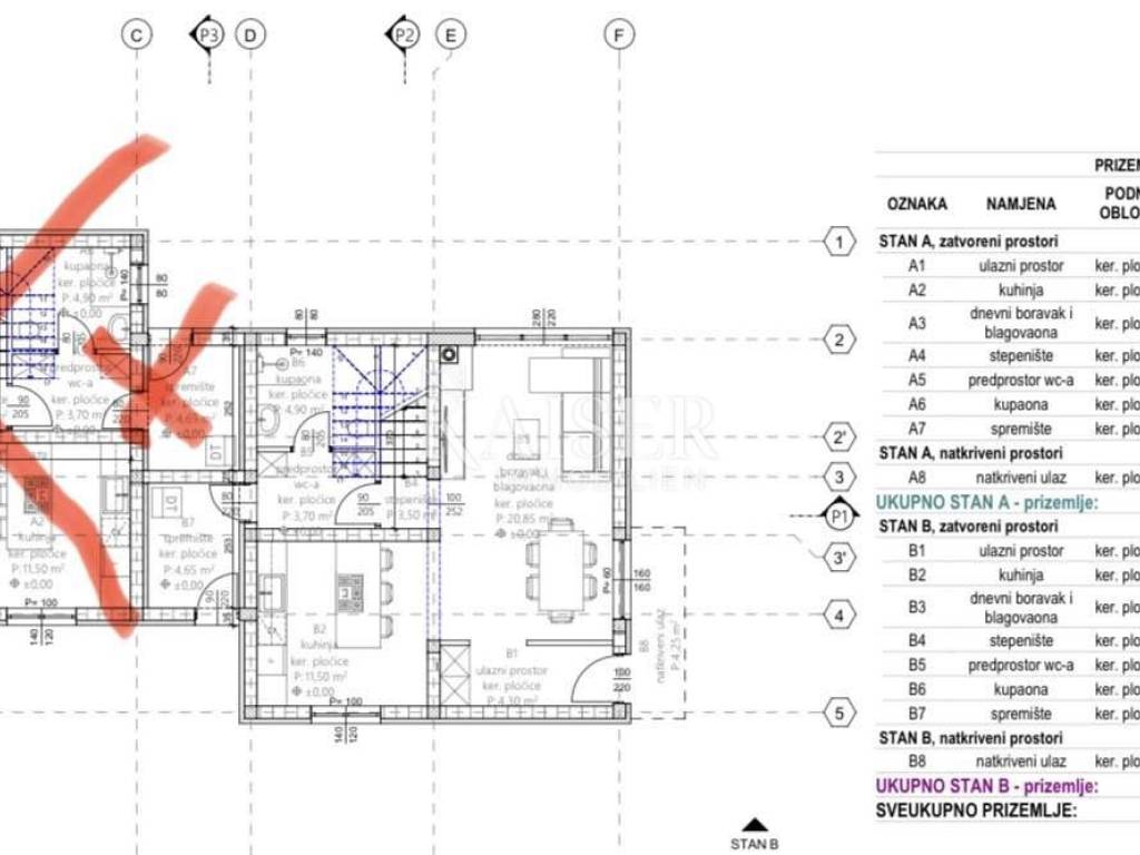Stan B predstavlja polovicu dvojne kuće u izgradnji od 109m2 (105m2 stan+ balkon 4m2). Neto korisna površina stana iznosi 103m2.