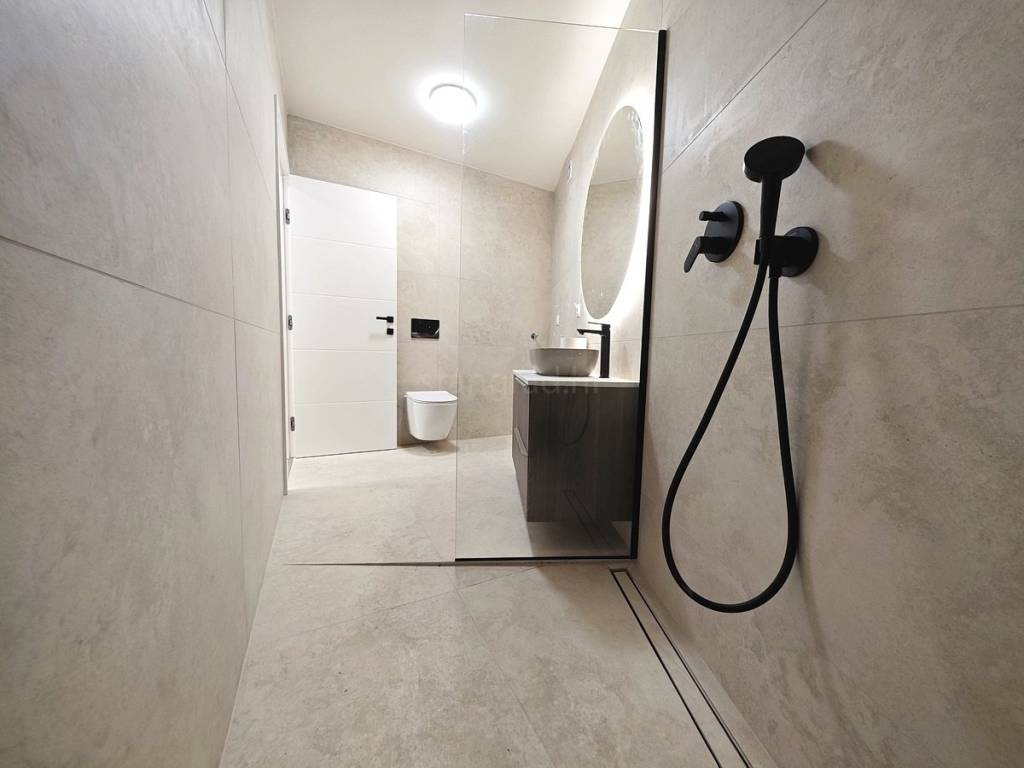 U novom i modernom objektu, apartman se nalazi na prvom katu. Stan ukupne površine 54 m² sastoji se od dnevnog boravka s kuhinjom i blagovaonom, jedne spavaće sobe, kupaonice i velike natkrivene terase. Pripadaju mu dva parkirna mjesta, što ga čini idealnim i praktičnim za život u centru grada.