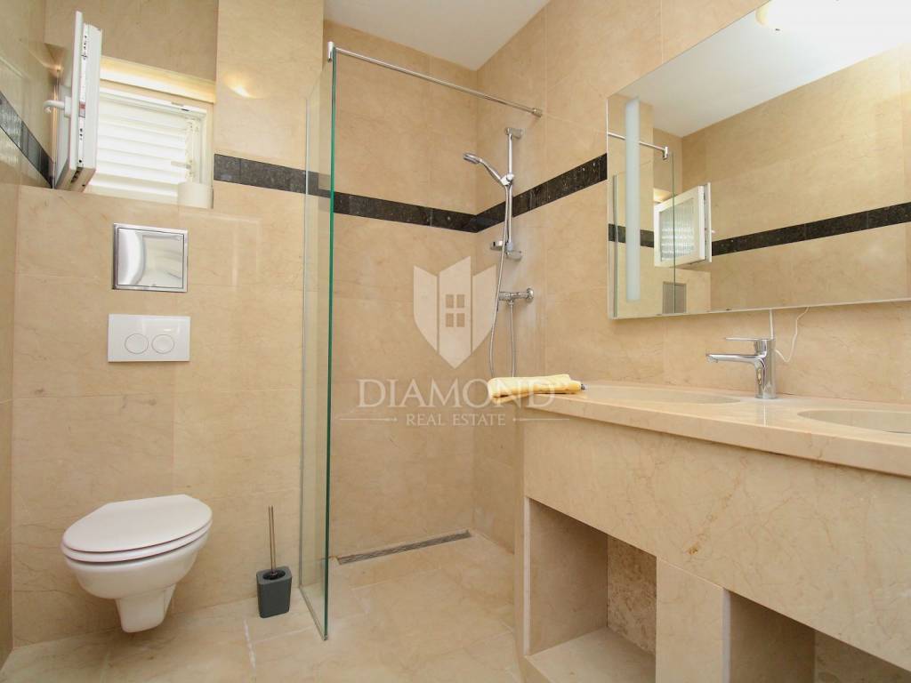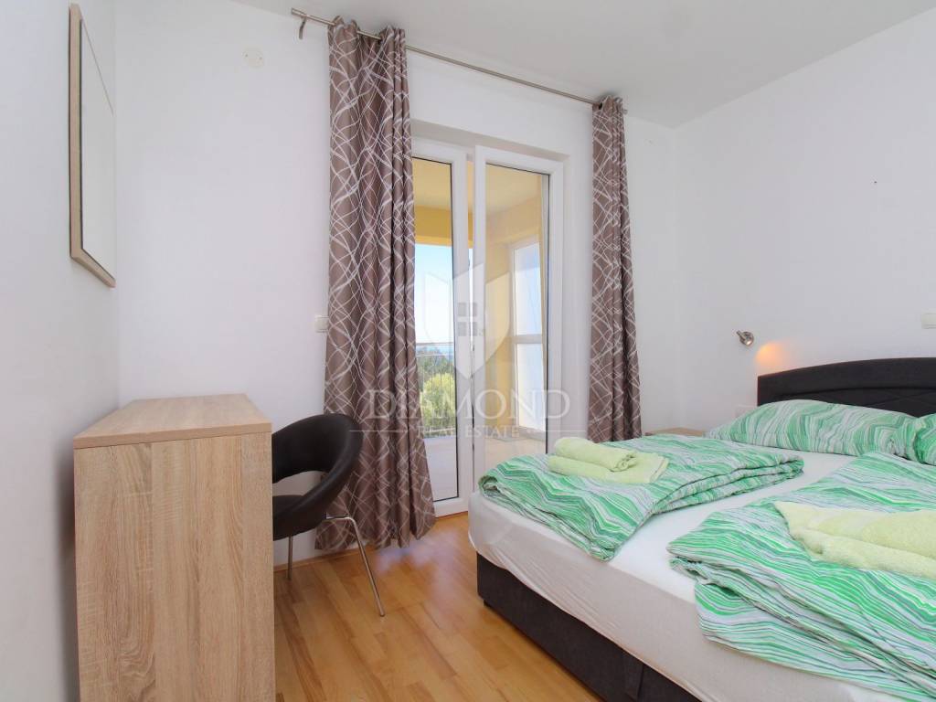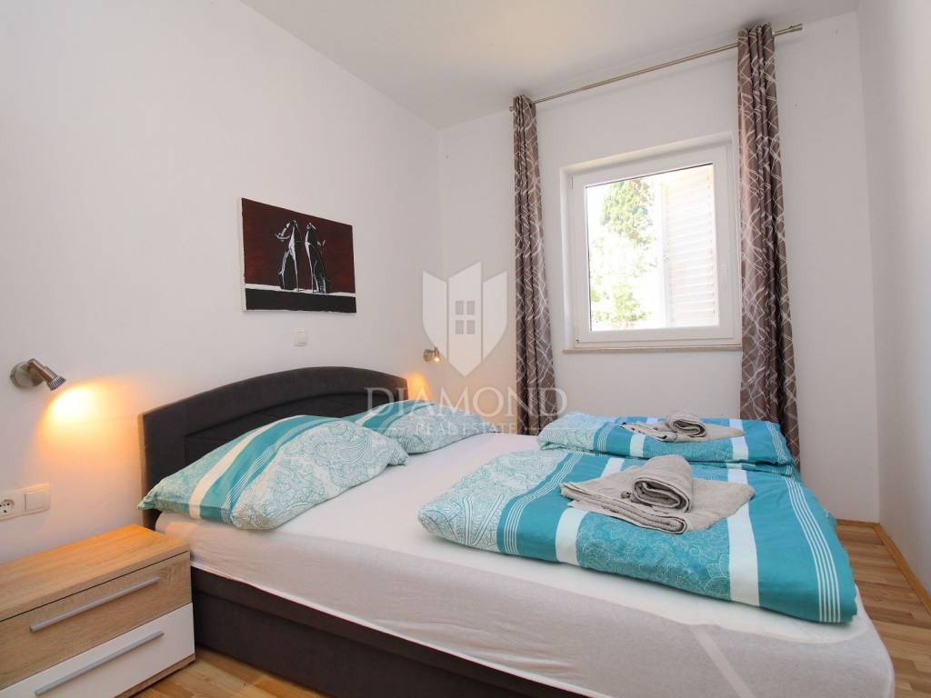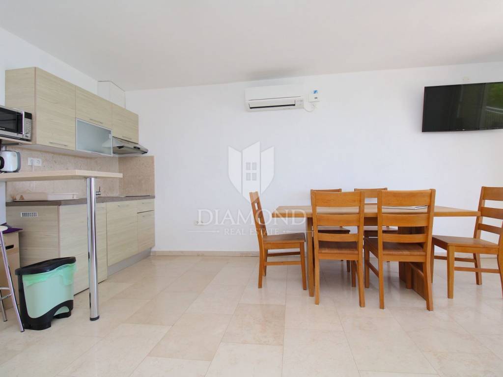 U ponudi naše agencije imamo izvrsnu poslovnu priliku i rijetkost na tržištu - apartmansku kuću sa bazenom i sa sedam zasebnih apartmana na odličnoj lokaciji, drugi red do mora. Tri apartmana sastoje se od dvije spavaće sobe, dvije kupaonice, gostinjskog toaleta te opremljene kuhinje i dnevnog boravka sa izlazom na balkon sa kojega se pruža nezaboravni pogled na more i zelenilo. U većim, dvosobnim apartmanima može boraviti 4-6 gostiju.