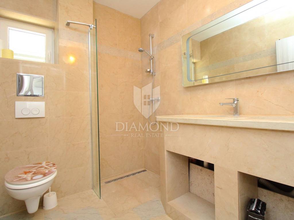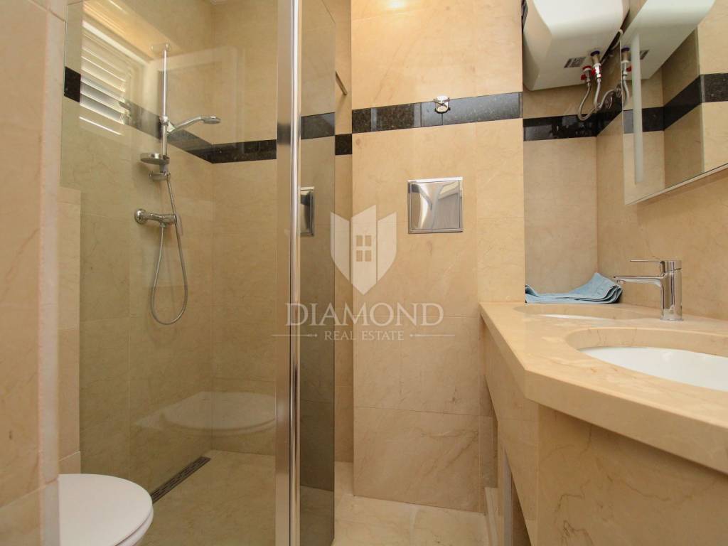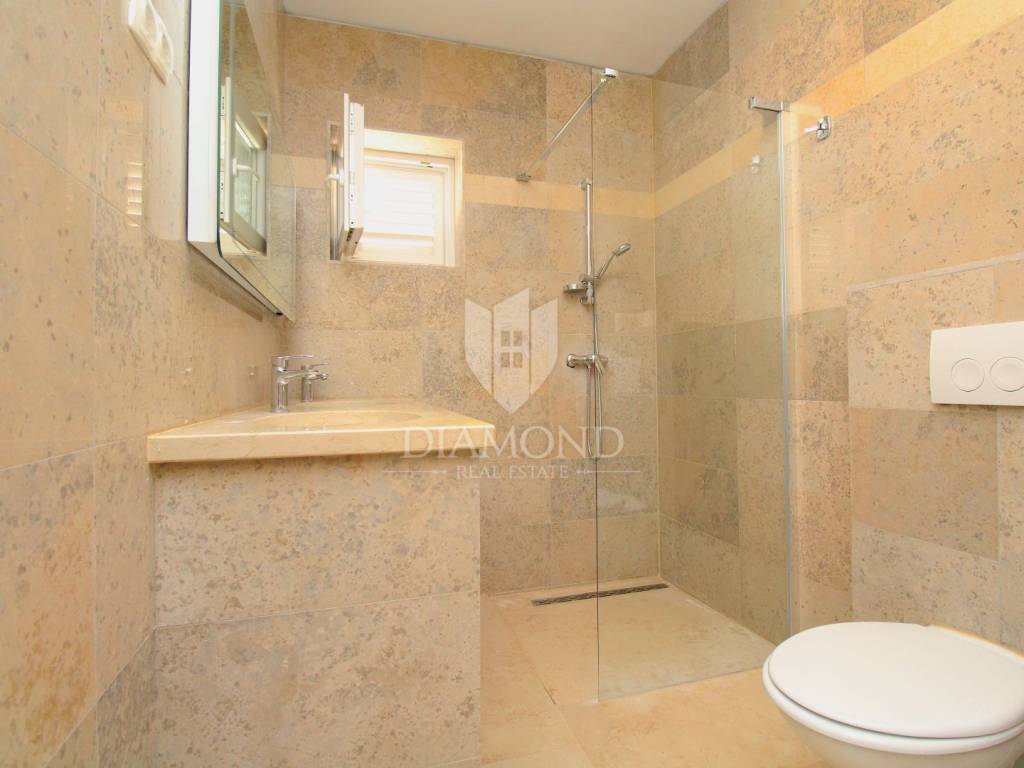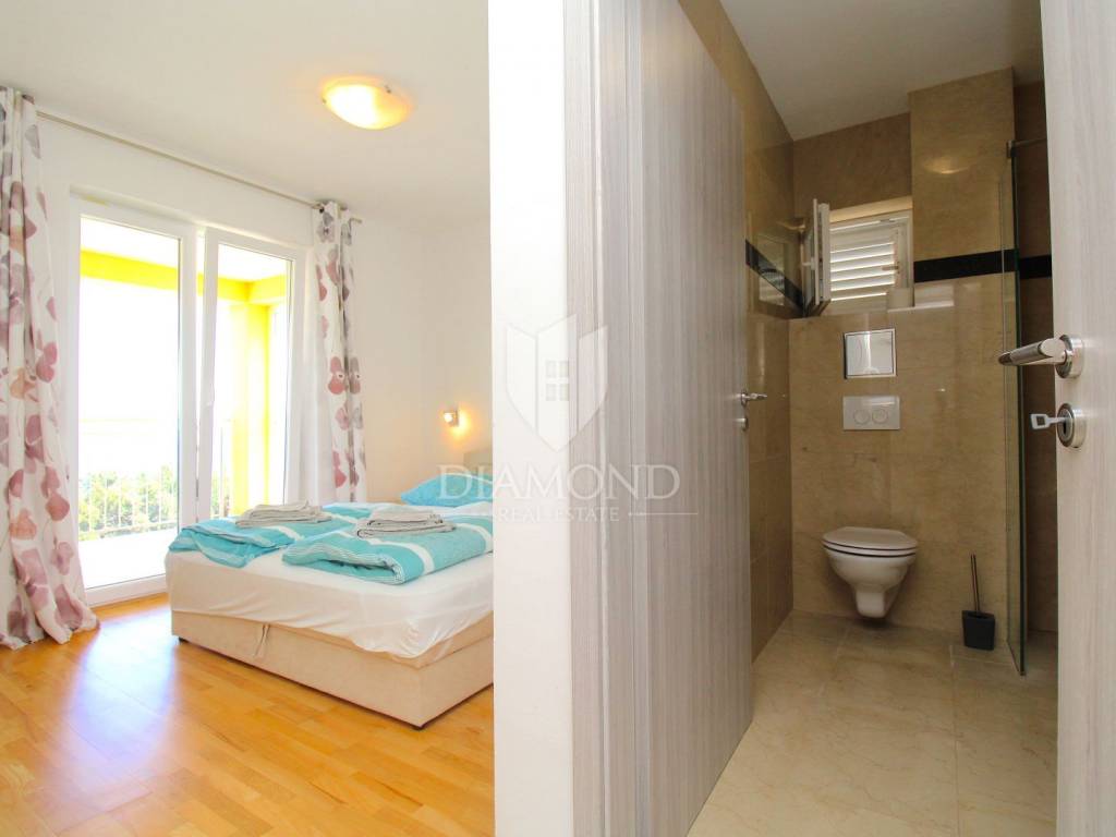 U ponudi naše agencije imamo izvrsnu poslovnu priliku i rijetkost na tržištu - apartmansku kuću sa bazenom i sa sedam zasebnih apartmana na odličnoj lokaciji, drugi red do mora. Tri apartmana sastoje se od dvije spavaće sobe, dvije kupaonice, gostinjskog toaleta te opremljene kuhinje i dnevnog boravka sa izlazom na balkon sa kojega se pruža nezaboravni pogled na more i zelenilo. U većim, dvosobnim apartmanima može boraviti 4-6 gostiju.