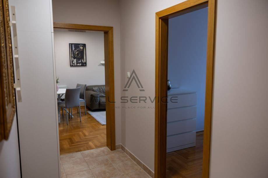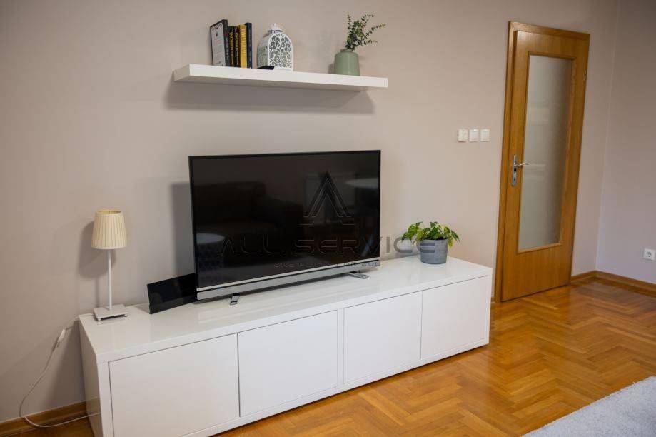 Iznajmljuje se moderan dvosoban stan na prvome katu novije stambene zgrade s liftom. Stan se nalazi u neposrednoj blizini poslovne zone Radnička, te svih ostalih sadržaja potrebnih za ugodan i lagodan život. U potpunosti je opremljen uređajima i namještajem te spreman za nove najmoprimce. Svi režijski troškovi plaćaju se po potrošnji. Grijanje je centralno etažno plinsko.