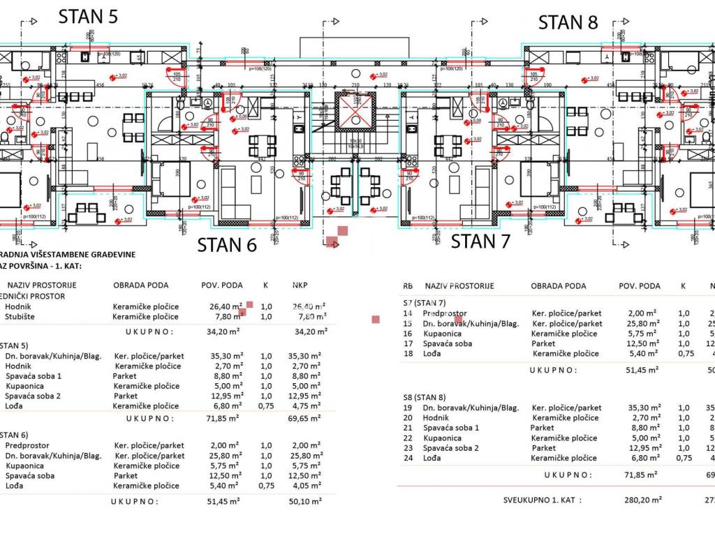 - led rasvjeta unutar stana, utičnice i štekeri, led vanjska rasvjeta na zajedničkim prostorijama, klima uređaj marke Samsung od 3,5 kW