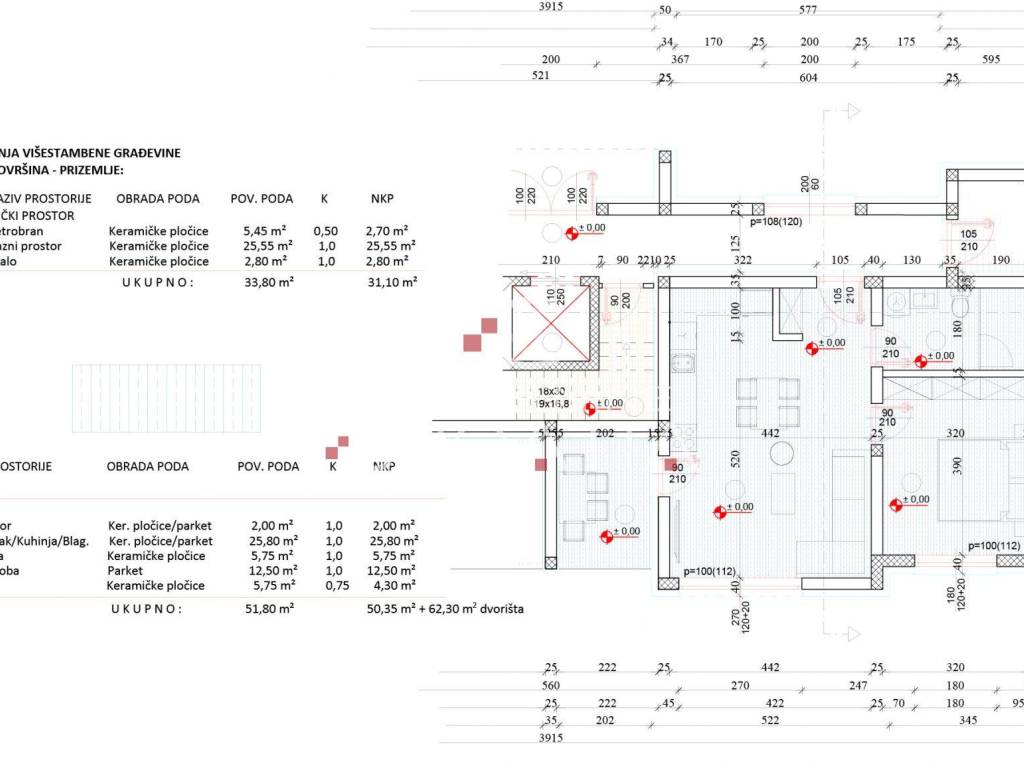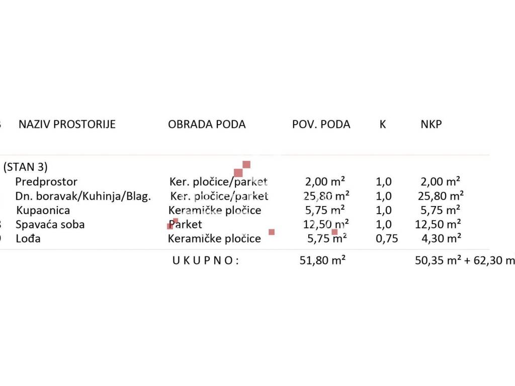 Ukupna stvarna površina stana iznosi 51.80 m2, neto korisna površina (NKP) iznosi 50.35 m2 + pripadajuće dvorište/ vrt površine 62,30 m2!