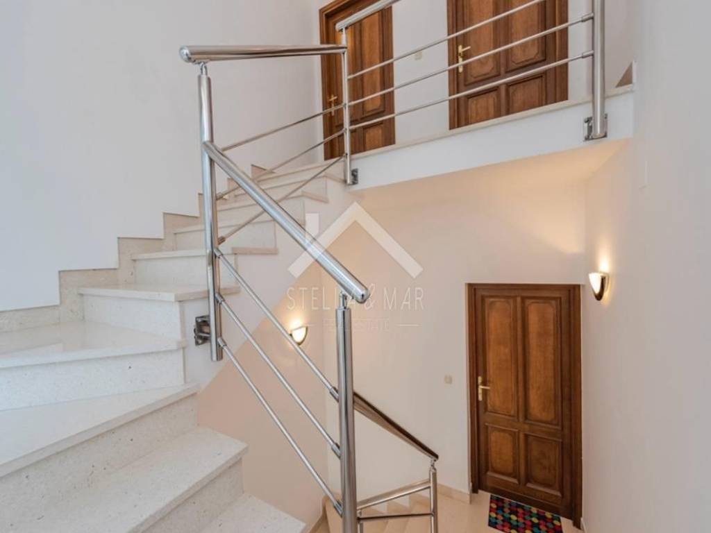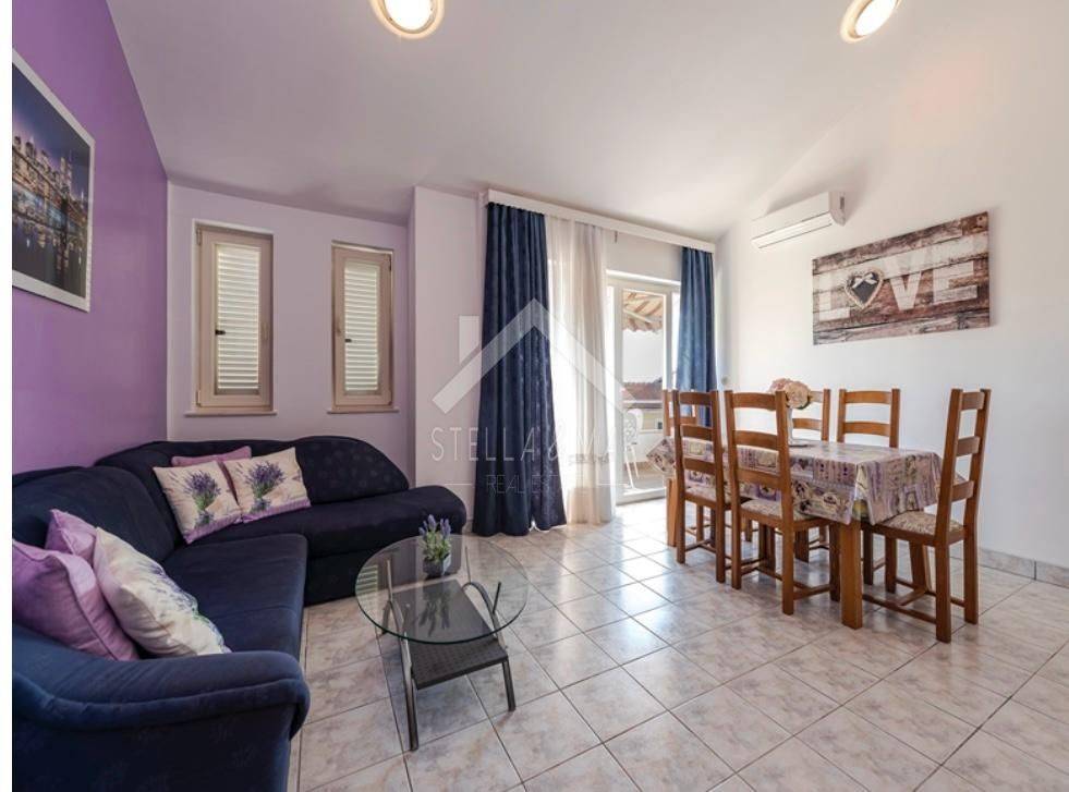 Dvorište je vrlo lijepo uređeno sa bazenom i roštiljem te prostorom za odmor i uživanje. Nekretnina je održavana, uhodana u turističkom najmu. Svi potrebni sadržaji udaljeni su 2-3 minuta laganog hoda (prekrasna plaža, trgovina, ambulanta, javni prijevoz, škola, vrtić,..).