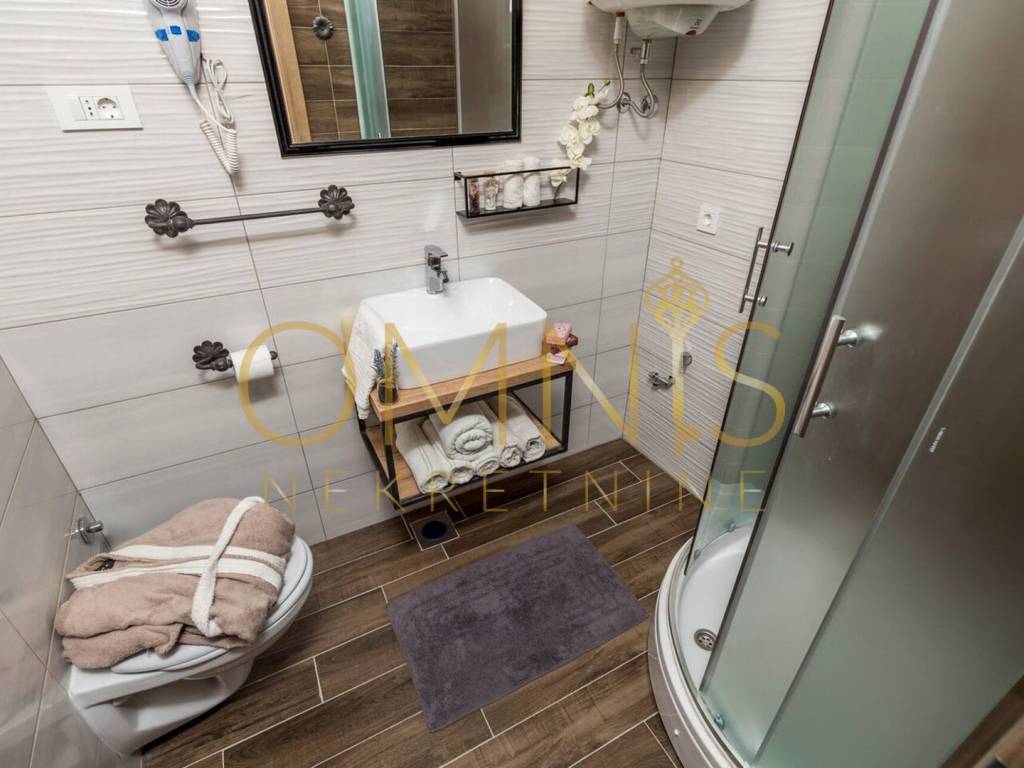 2. kat · Maks. 4 osobe · 50 m2 Ugodan i moderno uređen apartman smješten na drugom katu, idealan za parove ili manje obitelji. Sastoji se od dnevnog boravka s potpuno opremljenom kuhinjom i blagovaonicom te jedne spavaće sobe. Dnevni boravak i kuhinja uključuju: Potpuno opremljenu kuhinju Udoban kauč na razvlačenje za 2 osobe Klima-uređaj (grijanje/hlađenje) Spavaća soba: Moderna spavaća soba s bračnim krevetom Kupaonica: Kupaonica s tušem i WC-om Apartman nudi sve potrebno za ugodan i opuštajući boravak.