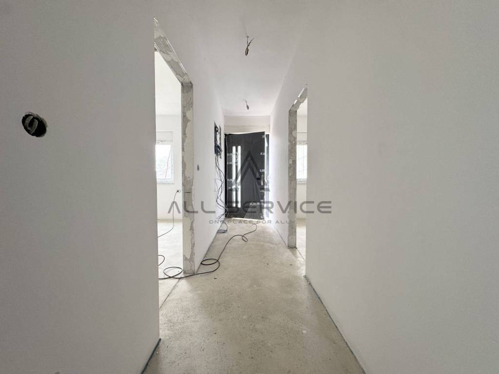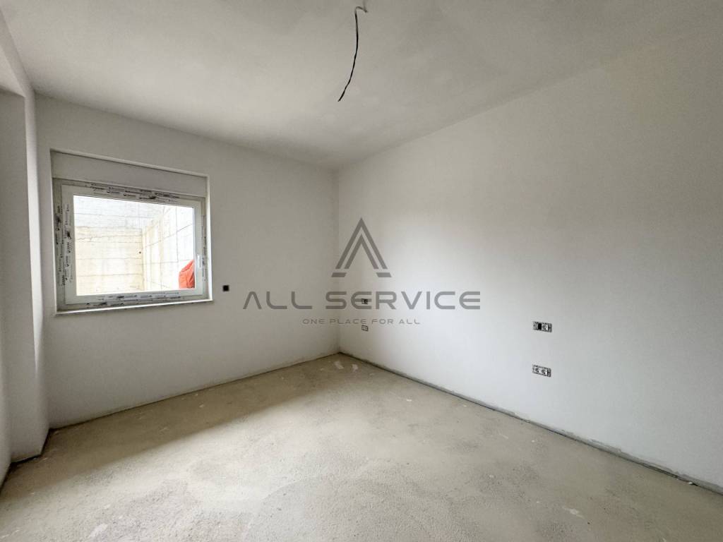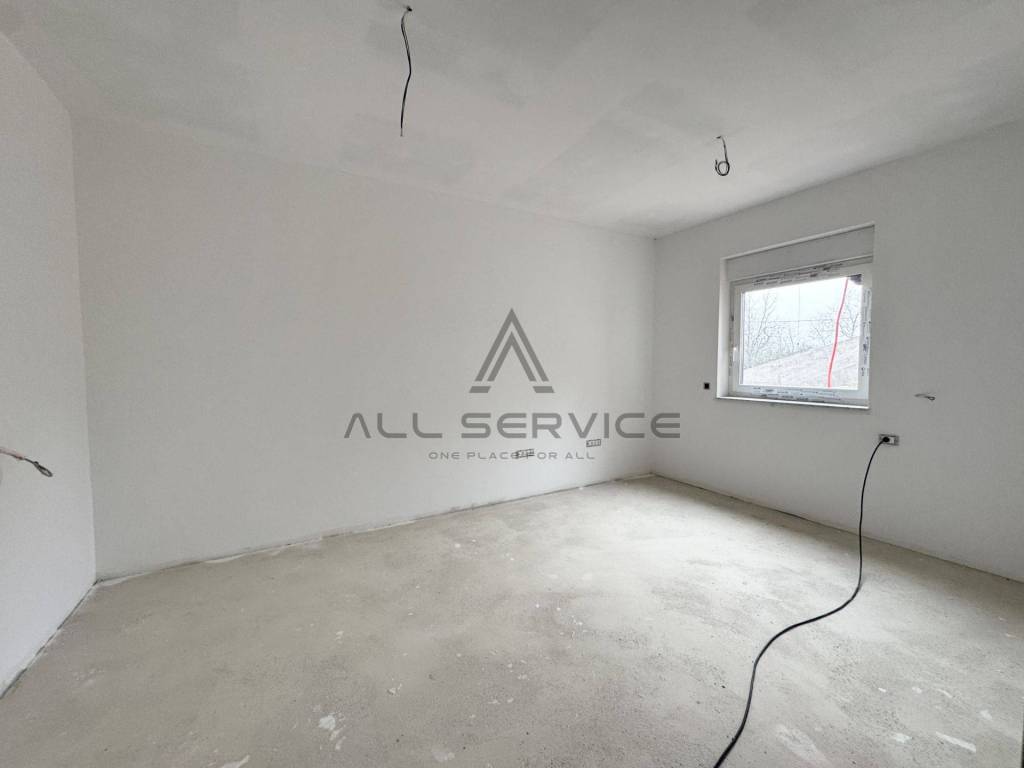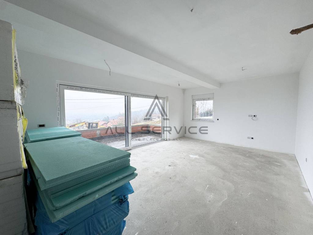 Stan se sastoji od: ulaznog hodnika, manja ostava, open space prostora s izlazom na balkon koji pruža prekrasan panoramski pogled na grad i okolicu, gostinjski toalet, master spavaća soba s vlastitom kupaonom, druga spavaća soba, privatni lift (garaža-stan).