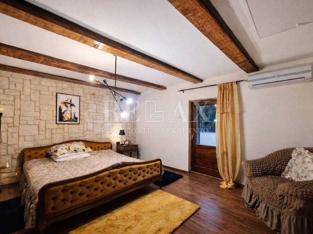 Kuća je jugozapadne orijentacije, potpuno namještena i opremljena s puno pažnje prema detaljima, a zahvaljujući klimatizaciji i peći na drva, omogućuje ugodan boravak tijekom cijele godine. Iako ne posjeduje privatno parkirno mjesto, ispred kuće je dostupna javna površina s dovoljno parkirnog prostora.