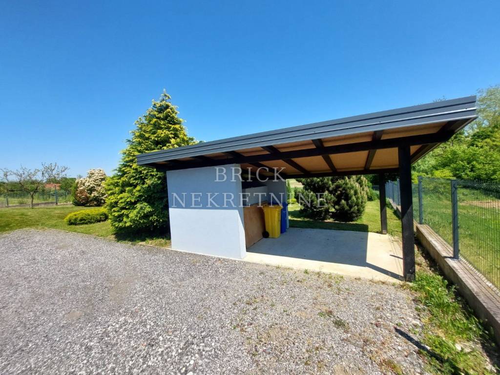 Nalazi se na parceli ukupne površine 931 m2, od kojih je kuća tlocrtne površine 156 m2.