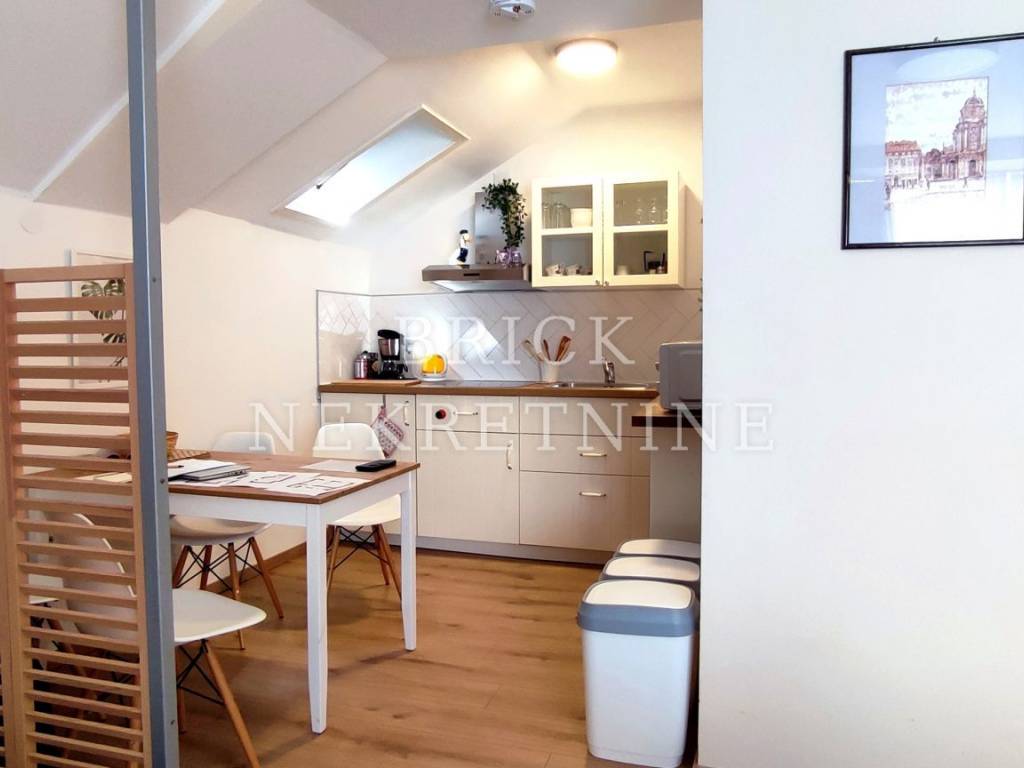 Na katu iznad (potkrovlje) smješten je apartman 2 površine 41 m2 i sastoji se od dnevnog boravka s kuhinjom i spavaćim dijelom te kupaonice.