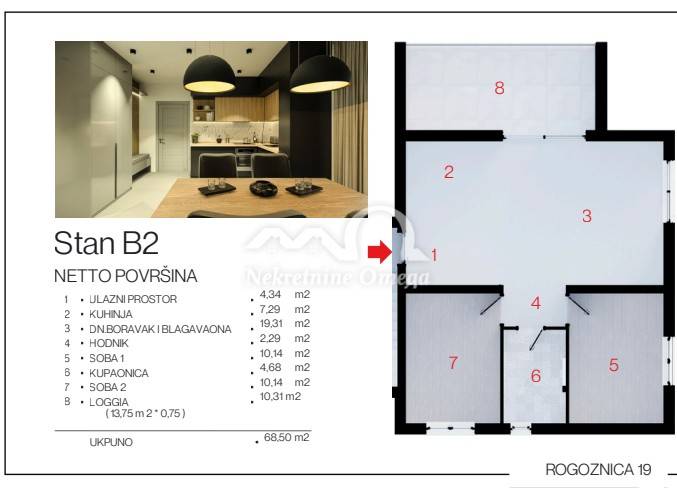 Lođa: 10,31 m² (obračun po koeficijentu 0,75)