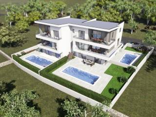 Malinska,okolica,dvosoban apartman u izgradnji na prvom katu stambene površine od 83,13 m2 s bazenom i okućnicom. Dvosoban apartman na mirnoj lokaciji udaljen svega 1,5 km od centra Malinske čiji se dovršetak radova očekuje u ljetu 2024 godine, se sastoji od ulaznog hodnika, kupaonice, dvije spavaće sobe, wc-a, kuhinje, blagovaone i dnevnog boravka iz kojeg se pruža izlaz na natkriveni balkon. Dvosobnom apartmanu u prizemlju stambene zgrade pripada i manji jednosobni apartman od 44,73m2koji se sastoji od jedne spavaće sobe kupaonice ,dnevnog boravka ,blagovaone i kuhinje iz koje se pruža izlaz na okućnicu od 200m2 s bazenom i sunčalištem. Apartman će biti opremljen, prvoklasnim keramičkim pločicama, vrhunskim sanitarijama, klimatiziran sustav grijanja i hlađenja, električno podno grijanje te rolete s komarnicima. Apartmanu pripada parking za dva vozila. Dokumentacija uredna.