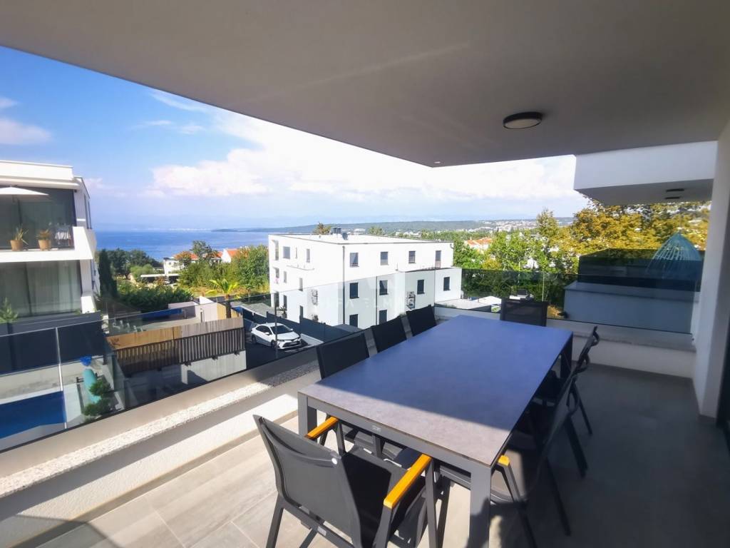 Malinska, luksuzni apartman sa panoramskim pogledom na more, udaljeni svega 200m od mora i uređenih plaža. Apartmani ukupne površine 88,,42m2 se nalazi se na prvom katu katu urbane, luksuzne i moderne vile.