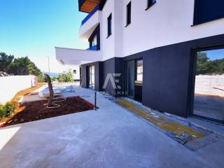 Krk, luksuzni apartman u izgradnji u prizemlju urbane vile sa četiri stambene jedinice. U prizemlju moderne zgrade na elitnoj lokaciji u gradu Krku nalazi se stan koji spaja funkcionalnost, udobnost i vrhunski dizajn. Na 82,62 m² stambenog prostora pažljivo su raspoređeni hodnik, prostrana kuhinja s blagovaonicom i dnevnim boravkom, tri spavaće sobe, dvije kupaonice i ostava. Stan se nastavlja na natkriveni ulaz i veliku terasu od 21,13 m², okruženu dijelom okućnice od 134,51 m², idealnom za mir i privatnost.