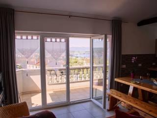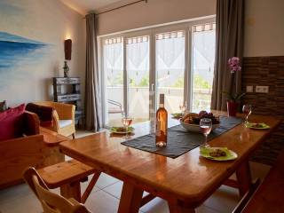 Posebnu čar ovom apartmanu daje balkon s kojeg se pruža nezaboravan pogled na morski horizont – idealno mjesto za jutarnju kavu ili večernje opuštanje. Apartman je opremljen klima uređajem, podnim grijanjem te pećima na pelete, što omogućava ugodan boravak tijekom cijele godine.