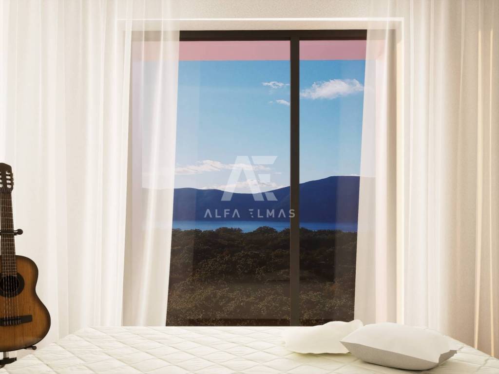 Prizemlje: ulazni hodnik, kupaonica, otvoreni prostor kuhinje, blagovaonice i dnevnog boravka, izlaz na prostranu terasu s pogledom na more