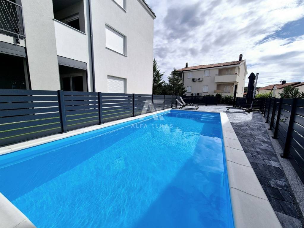 Na uređenoj okućnici apartmanu pripada jedno parkirno mjesto. Za dodatnu razinu uživanja, budući vlasnici imaju mogućnost korištenja zajedničkog bazena. Nekretnina je u sustavu PDV-a, što znači da kupci ne plaćaju porez na promet nekretnina. Dokumentacija je u potpunosti uredna, pružajući vam sigurnost pri kupnji vašeg novog doma ili nekretnine za odmor.