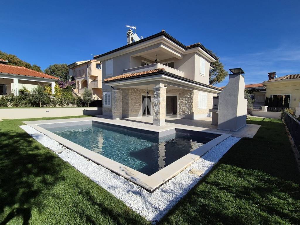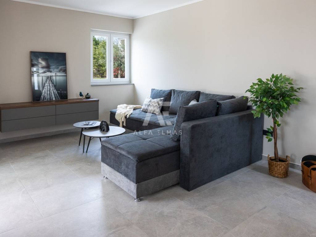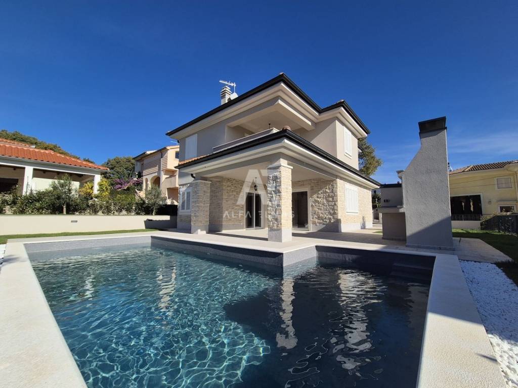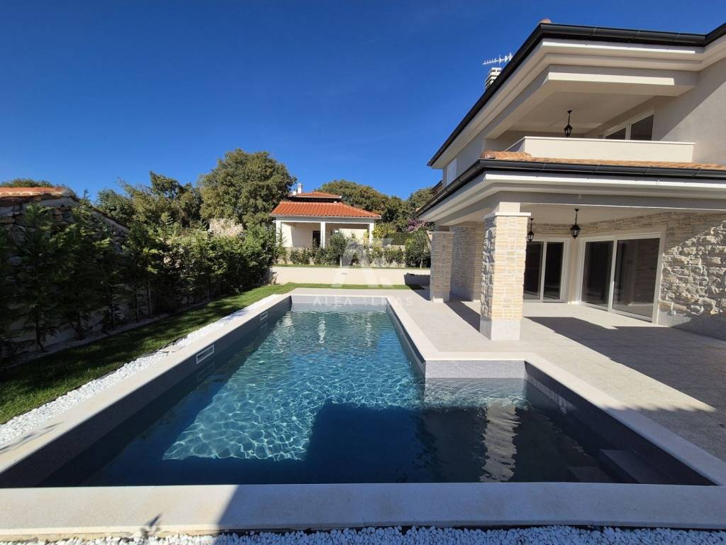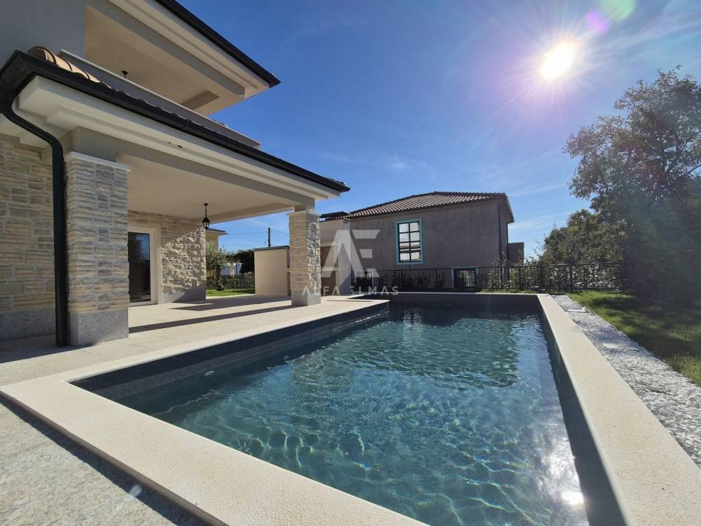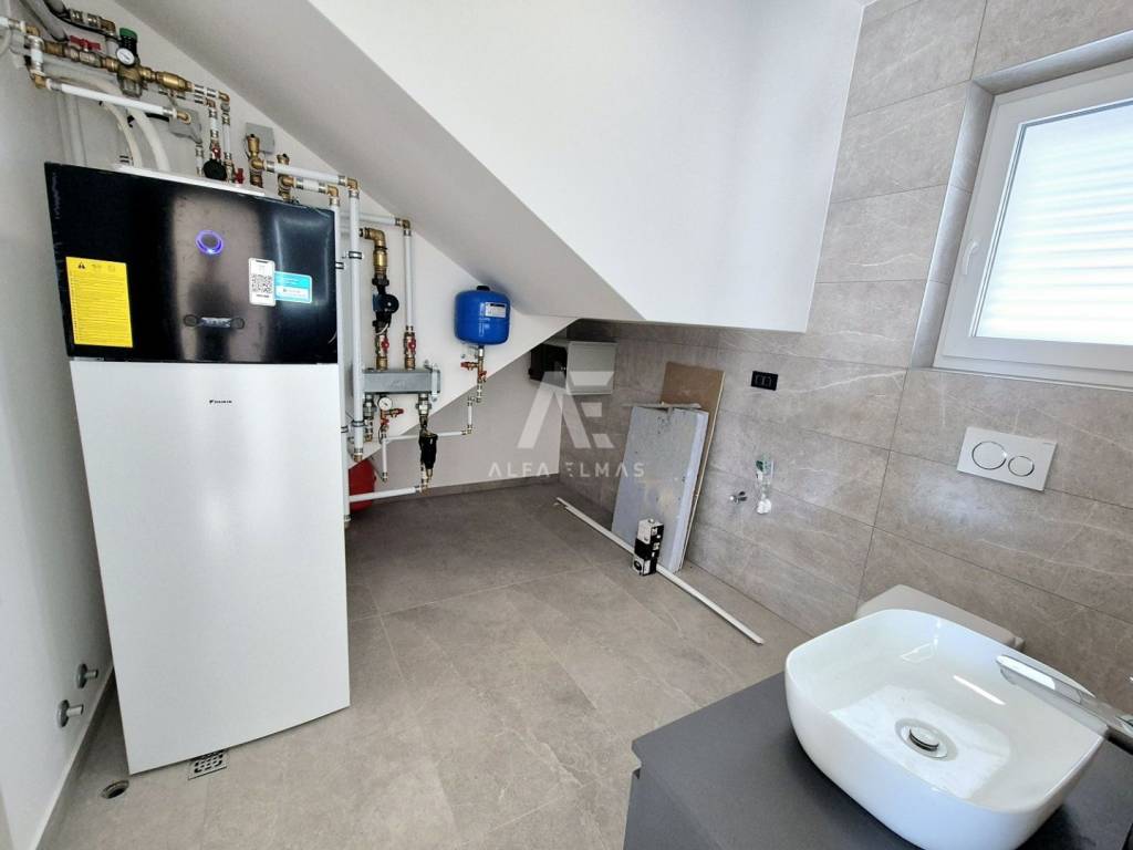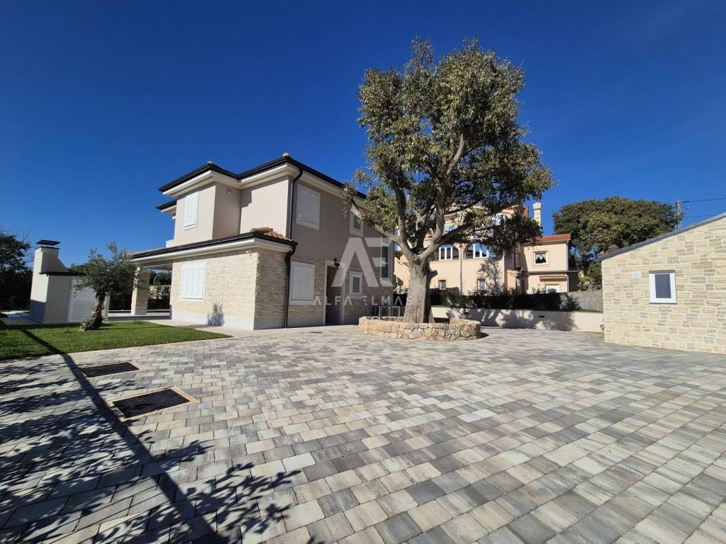 Vila je potpuno klimatizirana i opremljena podnim grijanjem, alarmnim sustavom i modernim sadržajem