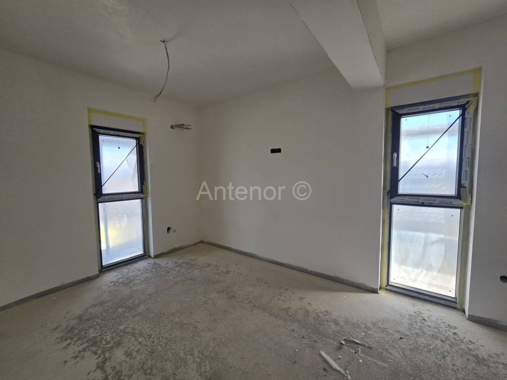 PRIVLAKA - prodaje se stan S4- dvosoban stanna 1. katu ukupne površine 78,23m2. Stan se sastoji od kuhinje s blagovaonicom i dnevnim boravkom, kupaonicom, dvije spavaće sobe, spremište s vešerajom, te natkrivena terasa. Stanu pripadaju i dva parkirna mjesta. Udaljenost od mora i centra mjesta je oko 1km. Stan ima podno grijanje u svim prostorijama (grijaći kabel u estrihu) i klima uređaj u dnevnom boravku i sobama. Zgrada je u završnoj fazi radova (unutarnji radovi, fasada). Stan je novogradnja, a predviđeni rokuseljenja je1.lipnja 2026.