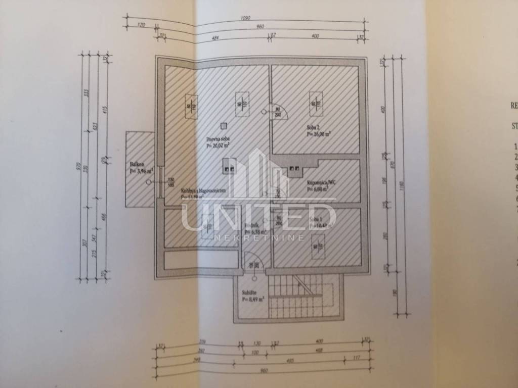 Sastoji se od: -dnevni boravak s kuhinjom i blagovaonicom -dvije spavaće sobe -kupaonica -balkon -hodnik