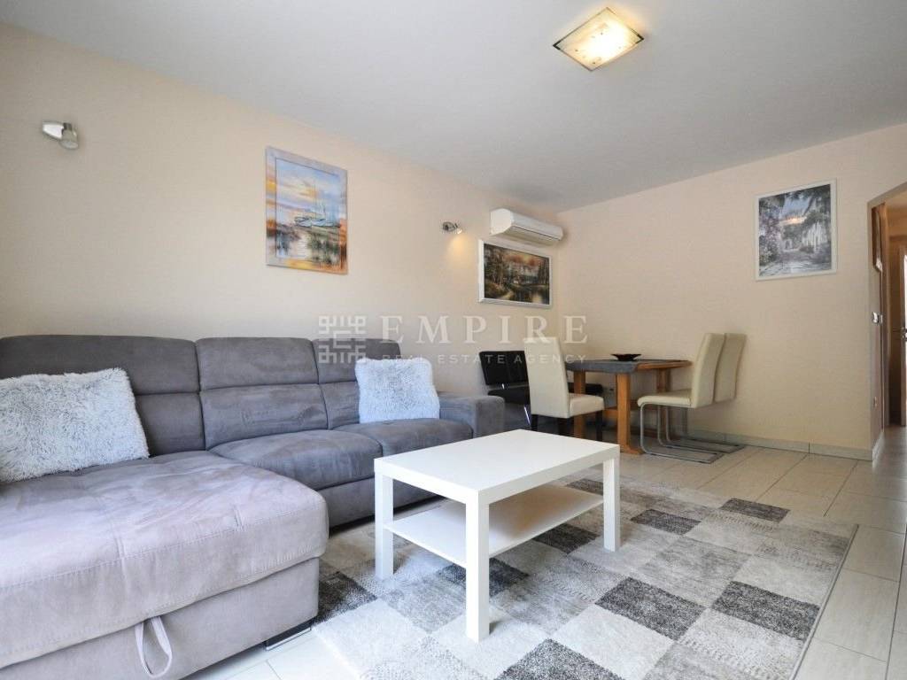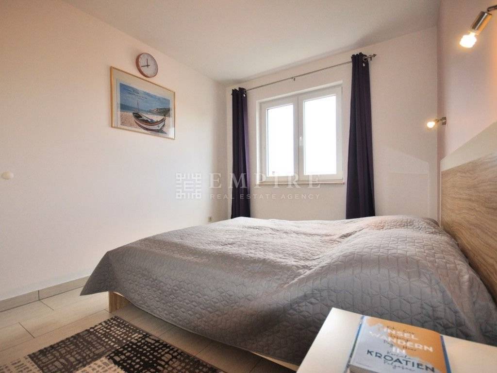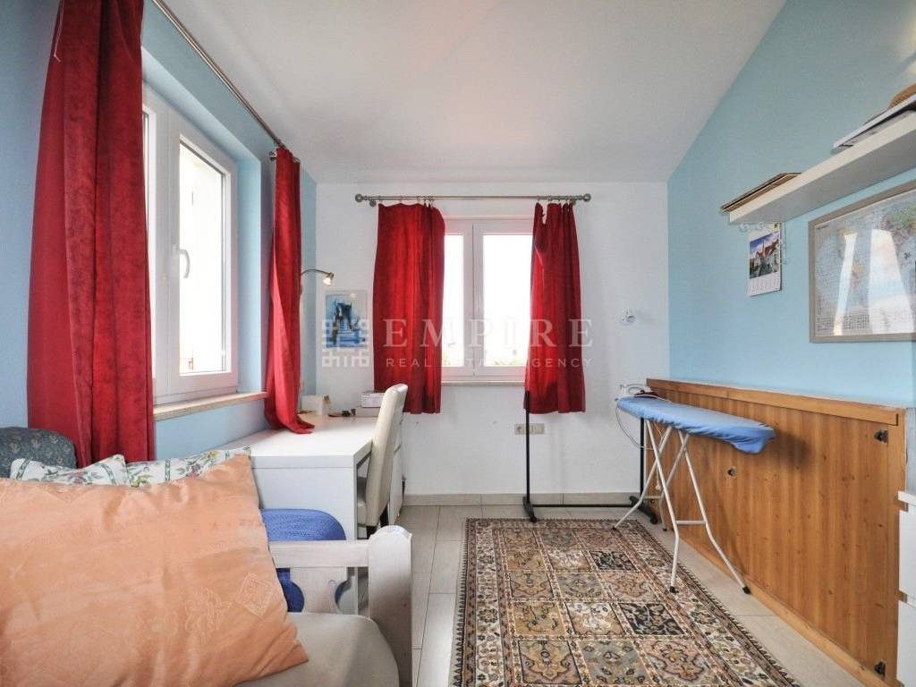 Prvi stan proteže se na dvije etaže: u prizemlju se nalazi ugodan dnevni boravak s izlazom na terasu, kuhinja, jedna spavaća soba, kupaonica s ostavom, dok se na katu nalaze još dvije prozračne sobe i dodatna kupaonica – idealna kombinacija za veću obitelj ili miran rad od kuće.