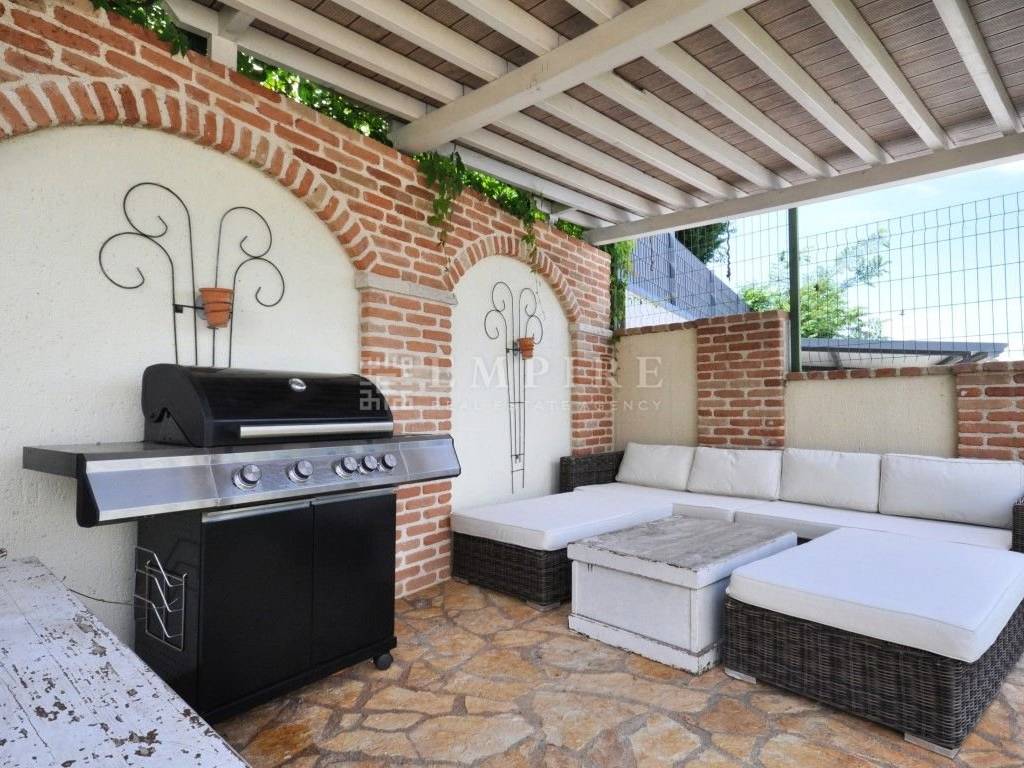 Uređeno dvorište skriva raskošan travnjak, mnoštvo mirisnog bilja i cvijeća, natkrivenu ljetnu kuhinju s prostorom za roštiljanje, a tu je i spremište te natkriveni parking za dva automobila. Svaki stan ima poseban ulaz u dvorište, što dodatno doprinosi osjećaju privatnosti.