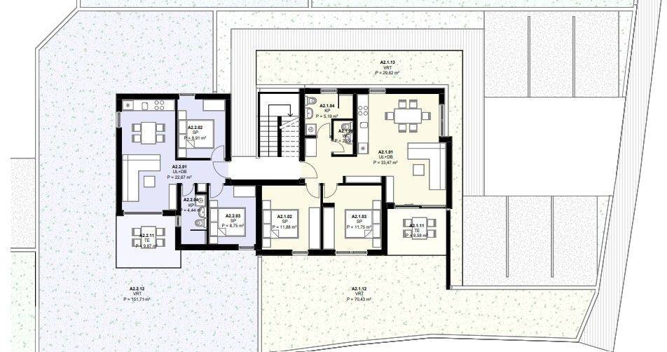 Na prodaju je stan A2.2, smješten u prizemlju moderne novogradnje A2 na atraktivnoj i mirnoj lokaciji u Kaštelu Novom.