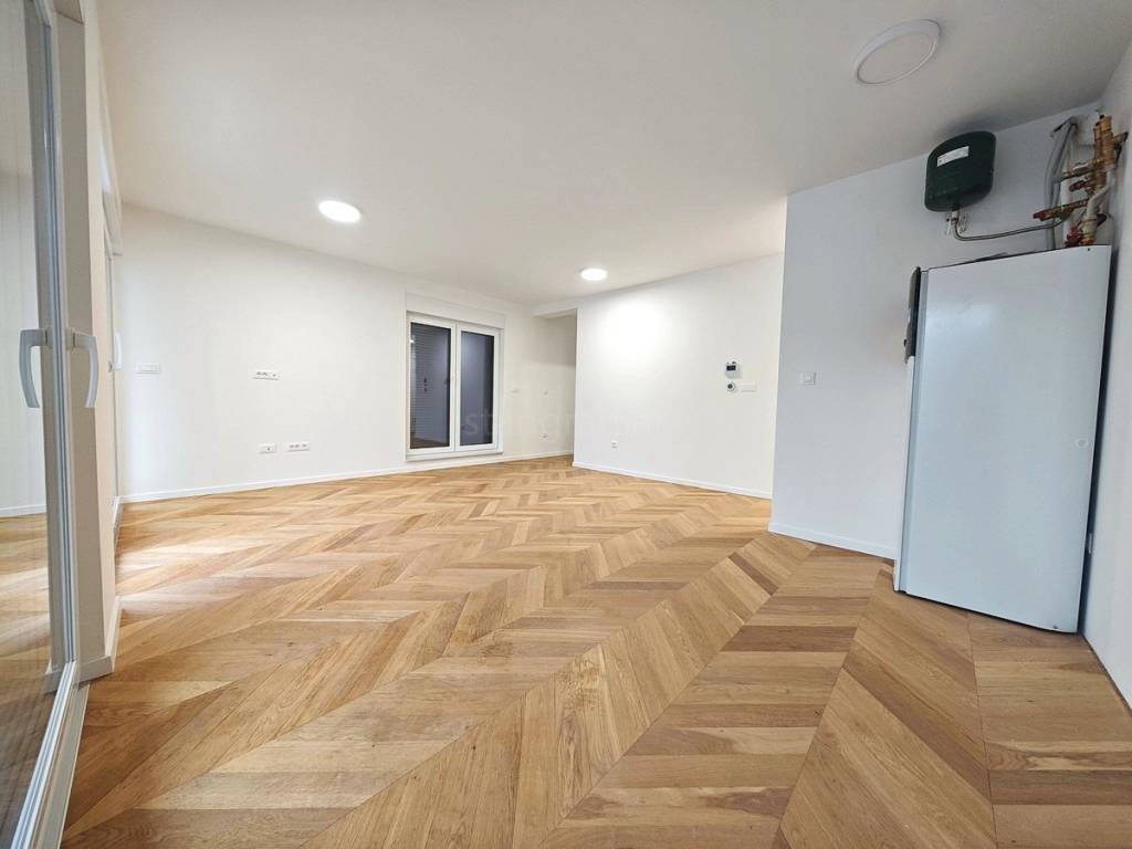 U novom i modernom objektu, apartman se nalazi na prvom katu. Stan ukupne površine 53 m² sastoji se od dnevnog boravka s kuhinjom i blagovaonom, jedne spavaće sobe, kupaonice i velike natkrivene terase. Pripadaju mu dva parkirna mjesta, što ga čini idealnim i praktičnim za život u centru grada.