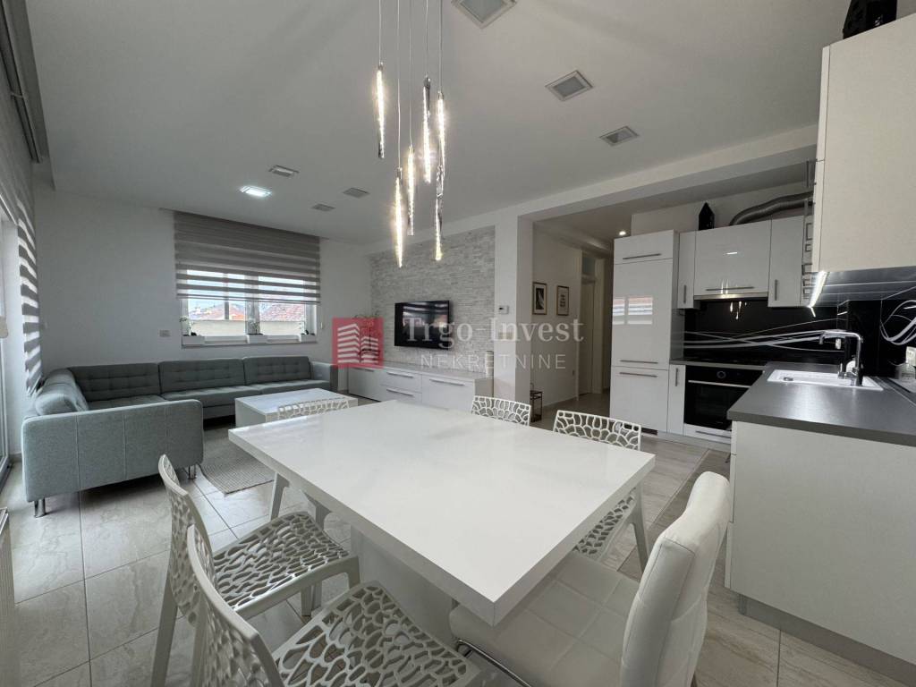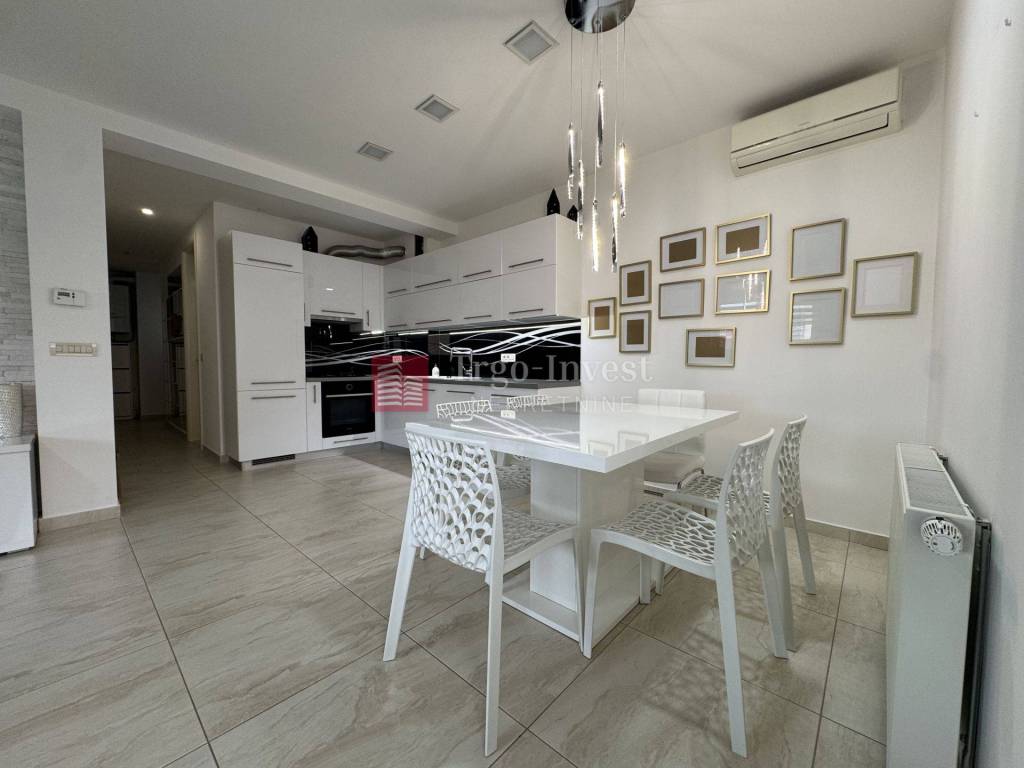 Stan je kompletno opremljen (perilica posuđa, perilica rublja, hladnjak, TV, posteljina, novi nadmadraci, posuđe i sl.), zgrada je novije gradnje (2015.), s niskim režijskim troškovima (svi troškovi odvojeni) te klimatizacijom.