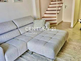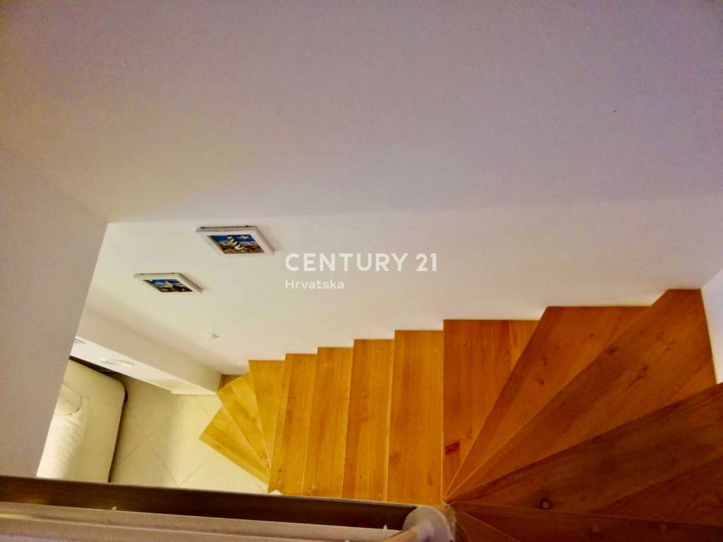 Stan je dvoetažni i sastoji se od ulaznog hodnika, kuhinje sa blagavaonom i dnevnim boravkom otvorenog tipa, terase i wc-a na prvoj etaži i od spavaće sobem kupaonice i terase sa pogledom a more na drugoj etaži.