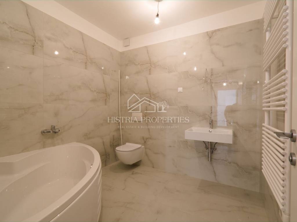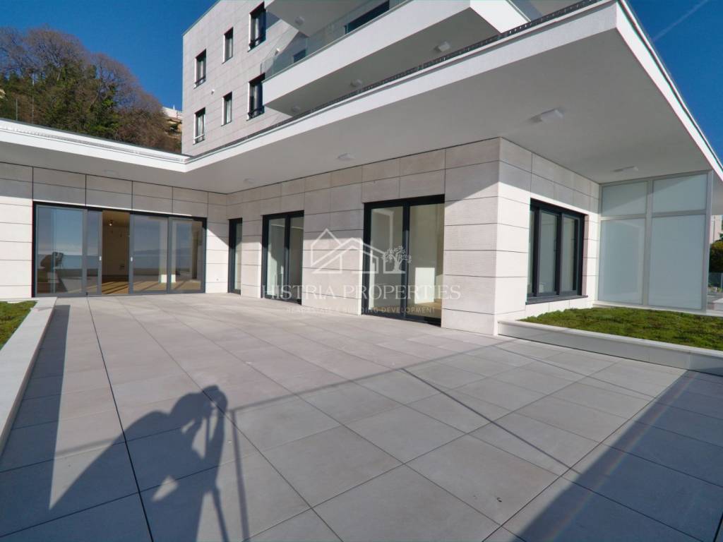 Prekrasna terasa sa zelenim pojasom vrta samo korak do plaže i pogled koji će Vas ostavljati bez daha u ovome prostranom luksuznom stanu u vrhunskoj novogradnji ispuniti će sva Vaša očekivanja.