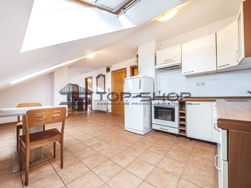 TopShop agencija za nekretnine nudi na prodaju dvosobni stan površine 53,26 m2, smješten u potkrovlju novouređene trokatnice izgrađene 2005. godine, na atraktivnoj lokaciji Trešnjevka – Ljubljanica.