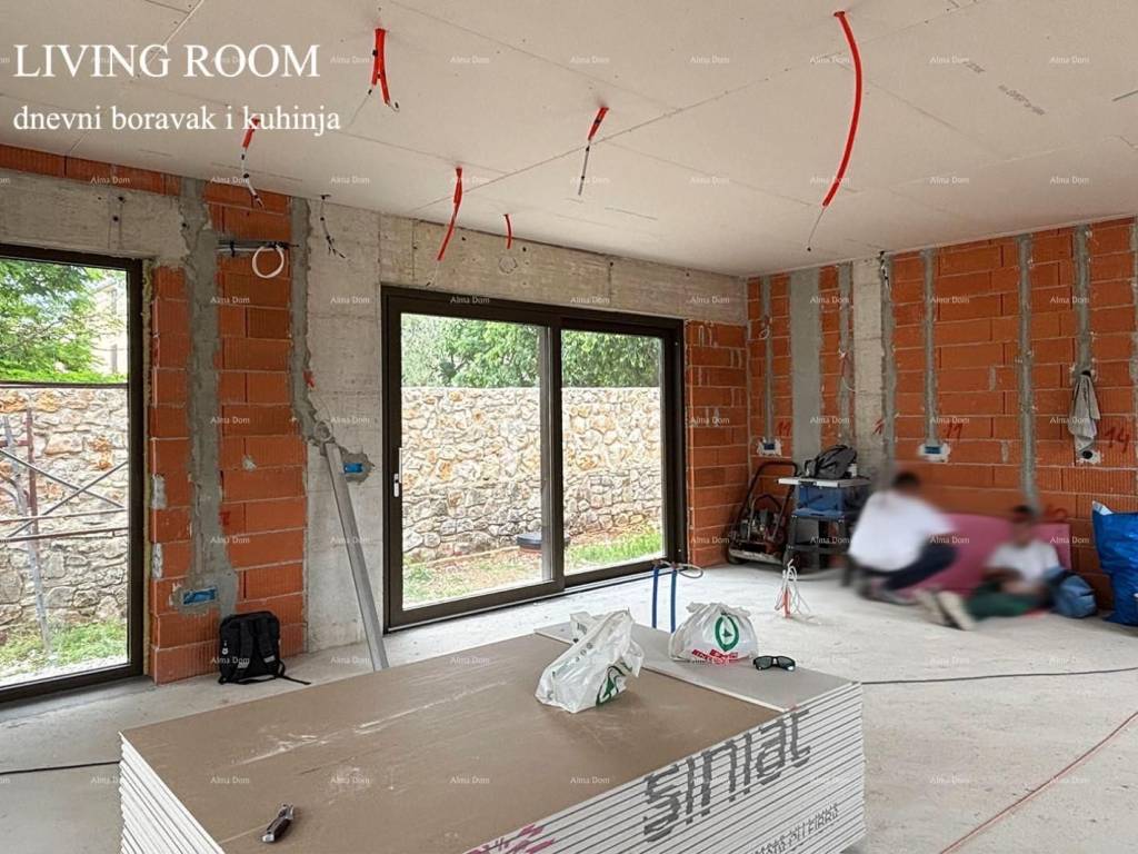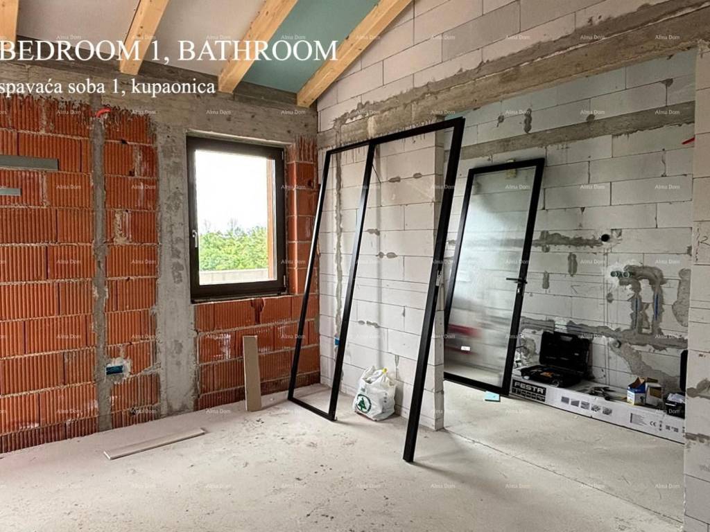 Prodaje se kuća u mirnom dijelu naselja u okolici Bala, ukupne površine 176 m², smještena na uređenoj parceli od 502 m². Idealna lokacija na rubu naselja pruža privatnost, mir i pogled na prirodu.Kuća se gradi na dvije etaže – prizemlje i kat – s planiranim završetkom gradnje i mogućnošću useljenja krajem 2025. godine.Raspored prostorija:Prizemlje:Ulazni hodnikProstrani dnevni boravak otvorenog koncepta s kuhinjom i blagovaonicomVelike staklene stijene koje osiguravaju obilje dnevne svjetlosti i direktan izlaz na okućnicuWC za gosteVešerajLuksuzna wellness zona s finskom saunom i popratnim sadržajima.Kat:Dvije prostrane spavaće sobe, svaka s vlastitom kupaonicom. Staklene stijene u sobama za maksimalno prirodno osvjetljenje.Jedna soba s direktnim izlazom na terasu s pogledom na zelenilo.Tehničke karakteristike:Centralno podno grijanje pomoću dizalice topline (zrak/voda), s termostatom u svakoj prostoriji.Četiri ugradbena klima uređaja za hlađenje.Bazen površine 37 m².Uređena okućnica s dekorativnim biljem.Ova kuća je savršen izbor za one koji traže kombinaciju moderne udobnosti, privatnosti i prirodnog okruženja, bilo za stanovanje, odmor ili investiciju u turističku namjenu.INFO:Azra +385 91 611 5706 +385 98 420 885 azra@almadominvest.com