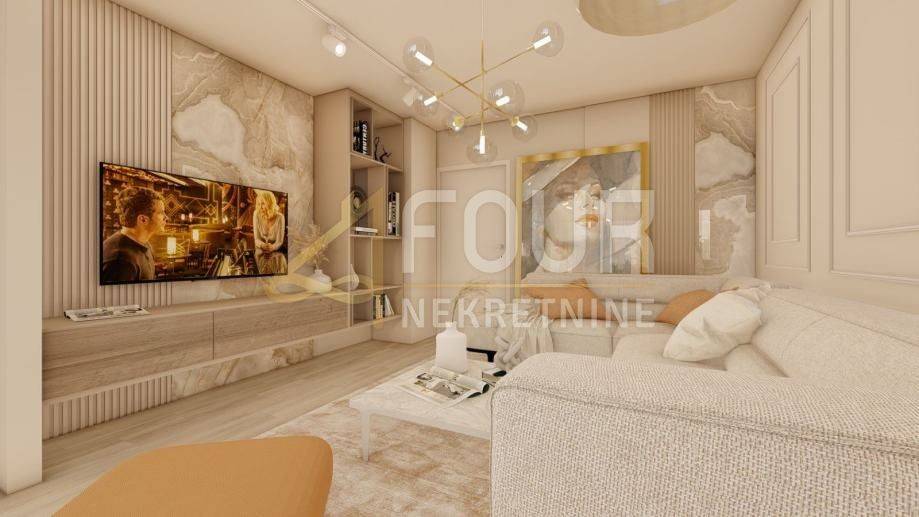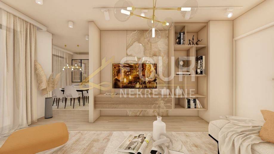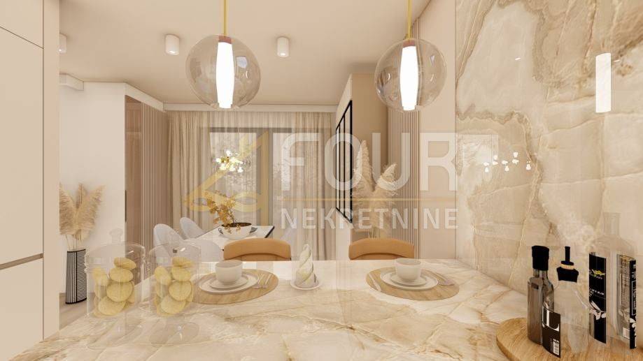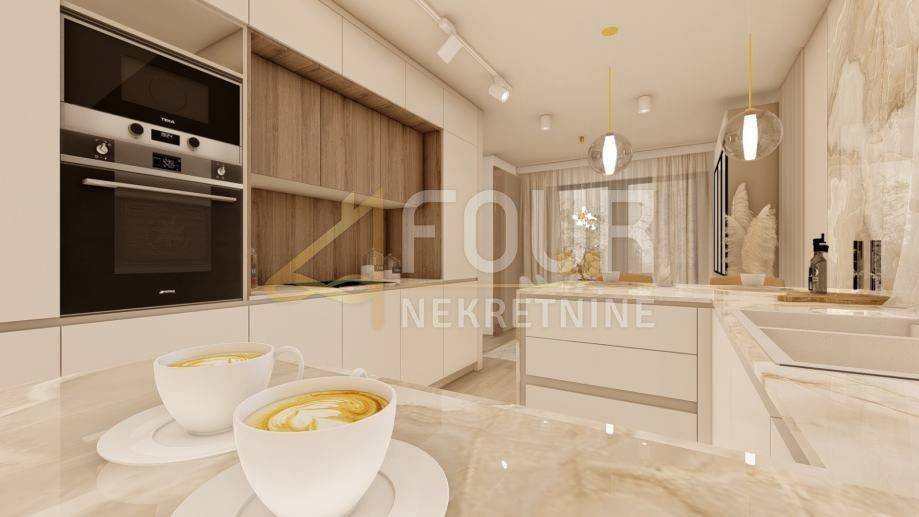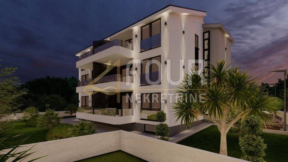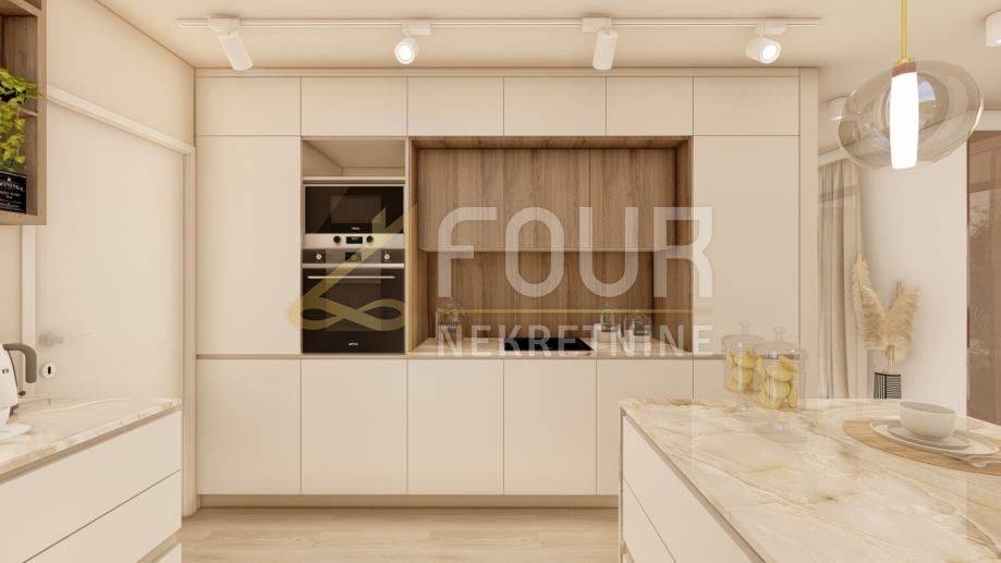 U ponudi imamo stan 3S+DB površine 99 m2 s pogledom na more. Nekretnina ima klimu, podno grijanje, toplinske pumpe. Privatni parking sa dva parkirna mjesta, otkriven i natkriven. Vlastiti ulaz u objekt, alarmni sustav, video portafon, električne rolete. Energetski razred A+.