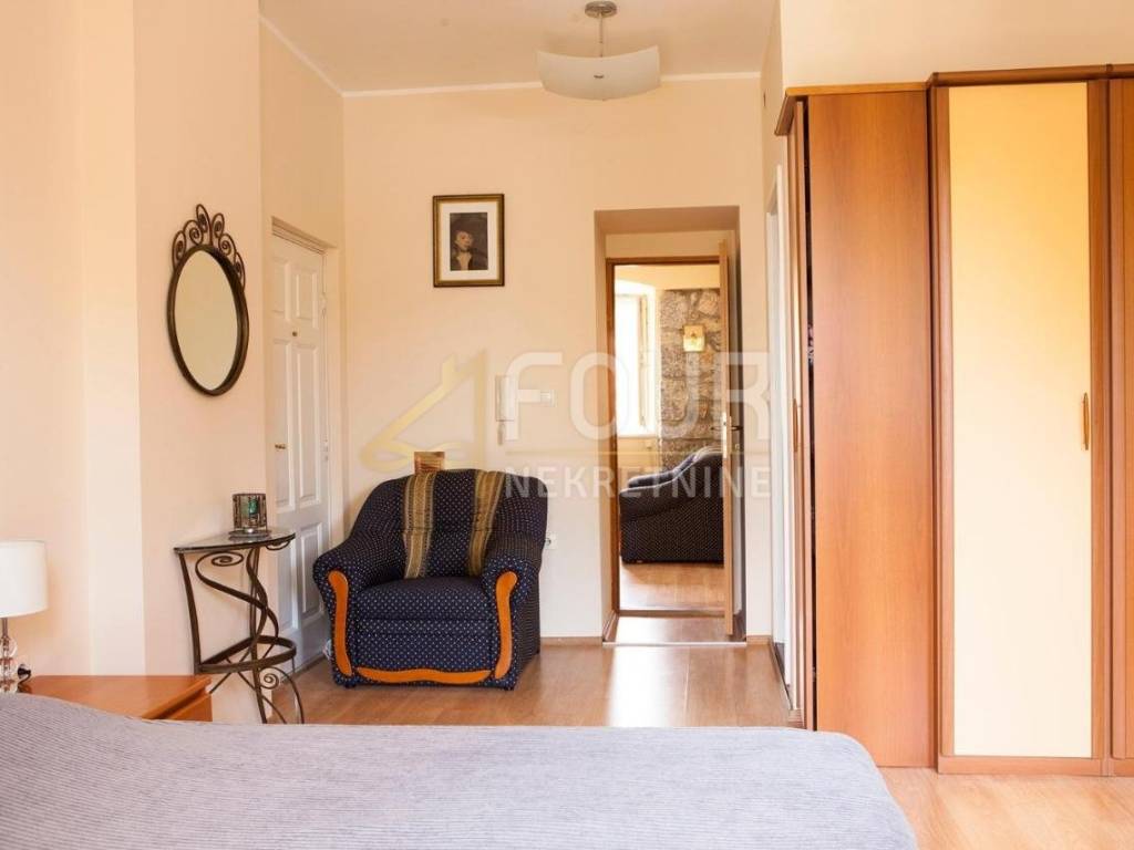 Na gornjim etažama nalaze se uređeni apartmani namijenjeni turističkom najmu – prvi kat čine dva apartmana s balkonima, dok se na drugom katu nalaze dodatni apartmani s galerijama i očaravajućim pogledom na more.